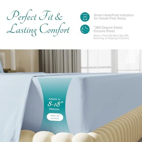 These sheets are a game-changer! The 800 TC Egyptian cotton feels incredibly soft and luxurious, just like high-end hotel bedding. The cooling sateen weave keeps me comfortable all night, even during hot summer months. The deep pockets fit my thick mattress perfectly without slipping. The sky blue color is rich and elegant, adding a touch of sophistication to my bedroom. I'm impressed by how durable and thick they are compared to other sheets I've tried. Fast shipping and great customer service made the purchase even better. Definitely worth every penny for the quality and comfort they provide!