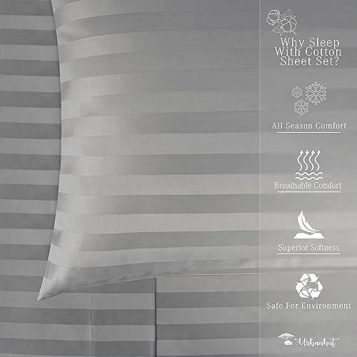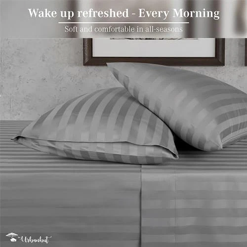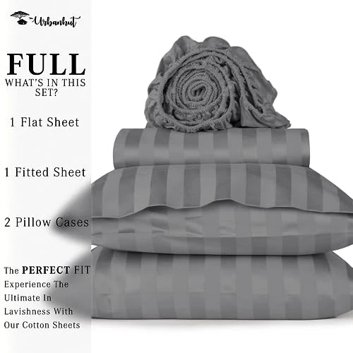 Return Policy Fast Delivery Trusted seller 800 Thread Count Egyptian Cotton Full Size Damask Striped Sheets Set (4 Pc) - Ultra Soft & Smooth, Thick & Crisp Sateen Weave Full Bedsheets, Fits Upto 16" Mattress - Dark Grey Product Description 100% PURE COTTON FOR PREMIUM COMFORT & SOFTNESS: Experience the luxury and silky-soft feel brought together by 800 threads woven per square inch with our premium cotton Full size sheets. These 800 thread count sheet sets are the perfect blend of breathability and durability, making them the ideal remedy for night sweats. 100% natural long staple cotton yarns are woven together using sateen weave to give you the ideal comfort and smoothness of 5-star hotel bedding. PERFECTLY FITTING SHEETS WITH ELASTIC DEEP POCKET: Snuggle up in these thick and soft 100 percent cotton sheet sets which keep you cool during summers and warm during winter. Each 4 piece Full sheet set has 1 flat sheet (84" W x 96" L), 1 fitted sheet (54" W x 76" L + 16" deep pocket) and 2 Queen pillowcases (21" W x 32" L). Sleep peacefully knowing your sheets are perfectly fitting the mattress and won’t bunch up in the night with our all-around elasticized deep pocket sheets. HIGH QUALITY & CRAFTSMANSHIP DELIVERED WITH EVERY SHEET: Urban Hut premium bedsheets resist fading and get softer with every wash, giving you a of comfort in just one buy. To provide you with utmost comfort, and durability, every sheet is measured and stitched individually. They also undergo thorough testing for various features like color fastness, minimum shrinkage, and no-pilling. We recommend a regular wash and short dry cycles to attain long-lasting, superior smoothness. ECO-FRIENDLY & ETHICALLY CRAFTED: Made from ethically sourced pure cotton known for softness and durability, our sheets are stitched with precision. Long fibers in our sheet sets create smoother, tear-resistant & pill-resistant bedding for comfort and longevity. We take pride in our eco-friendly processes, earning OEKO TEX certification for being free from harmful chemicals.. YOUR SATISFACTION IS IMPORTANT TO US: Along with superior comfort and luxury, our products also come with incredible customer service and 100% satisfaction . Gift them to your loved ones and family or simply add them to your stunning room decor and enjoy bespoke californian luxury with our high quality sheets. Shipping Returns Payment Shipping Shipping is FREE to all addresses other than APO/PO boxes in the lower 48 states. All our stock ships from US-based warehouses. Shipped via USPS or UPS (depending on location and package weight) Unless stated otherwise, all orders will ship within 24-72 hours of your payment being processed. Check our feedback to see the great reviews of FAST shipping we offer. Returns Seller does not accept returns Payment We currently accept payment via eBay managed payments only. Once payment is cleared, we will dispatch your shipment within 1-3 business days. Please refer to the "Shipping" tab for more information regarding shipping speed to your destination.