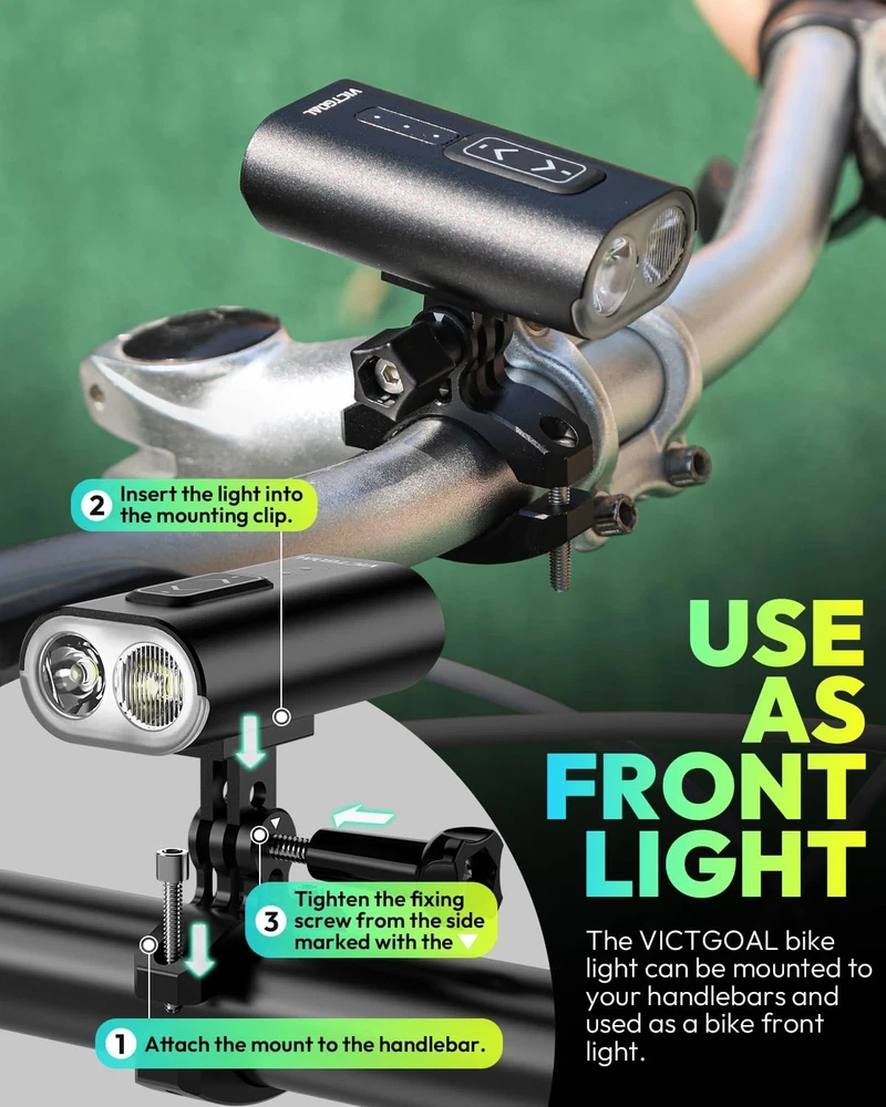 Product Description: Brightness: 800 Lumen Waterproof: IPX5 Size: 4.1*7.5*2.4cm Weight: 105g Material: Aluminum alloy Battery: 2000mAh rechargeable LED Bulb: LED*2 Lighting Modes: 13 lighting modes High Beam Modes: High-Medium-Low-Strobe-SOS Low Beam Modes: High-Medium-Low-Strobe-SOS Double Click to switch dual light mode: High-Medium-Low Battery Display: 3-level battery indicator Package include: helmet light*1, adjustable helmet mount *1, handlebar mount*1, type-C cable*1, instruction*1. Features: 1.The Powerful Bike Headlight that fits any bike or scooter handlebar is the essential accessory for night rider. 2.The High performance front bike helmet light that can be mounted to any helmets will enhance visibility and safety while illuminating your path. 3.The cycling helmet light is equipped with dual beam, can help us deal with different situation and demands while providing 13 modes and 3 brightness levels. 4.The light for bike helmet is so portable and waterproof that can be perfect for multi-activities as cycling, hiking, camping and repairing. 5.The front helmet lamp with 2000mAh battery provide long battery life on a single charge, can be speedy Type-C charging and easy battery monitoring. High Brightness & Easy Operation: Super bright 800 Lumens bike helmet light with dual beam can provide 13 modes and 3 brightness by 2 buttons. Easy switch between High and Low Beam of the bicycle headlight can ensure the maximum visibility in night cycling, farther, wider and safer. Mount on Helmet & Handlebar: The bike helmet light provides an adjustable helmet mount and a handlebar mount that suitable for most helmets or the handlebar of any bikes and scooter. Ensuring the front bike light always illuminates the path effectively and safely as a perfect addition for biking, hiking, or any nighttime adventure. Long Battery Life & Quick Charge: Helmet light features a 2000mAh battery to provide extended use of 8 hours on a single charge, ensuring stay illuminated during outdoor activities. Type-C quick charging and battery indicator of the bike front light makes it easy to power up and monitor before next outing. Durable, Lightweight & Waterproof: Bike headlight is crafted from high-quality aluminum alloy, weighs only 105g making the helmet light easy to carry and mount. Its IPX5 waterproof rating offers protection against rain and splashes, ensuring use in various weather conditions. Versatile Use of Helmet Light: With the handlebar base and helmet mount, the portability, high brightness and IPX5 waterproof of the front bike light is ideal for multiple outdoor activities, including cycling, camping, camping and repairing. Being safe in low-light situations with our reliable illumination bicycle headlight.