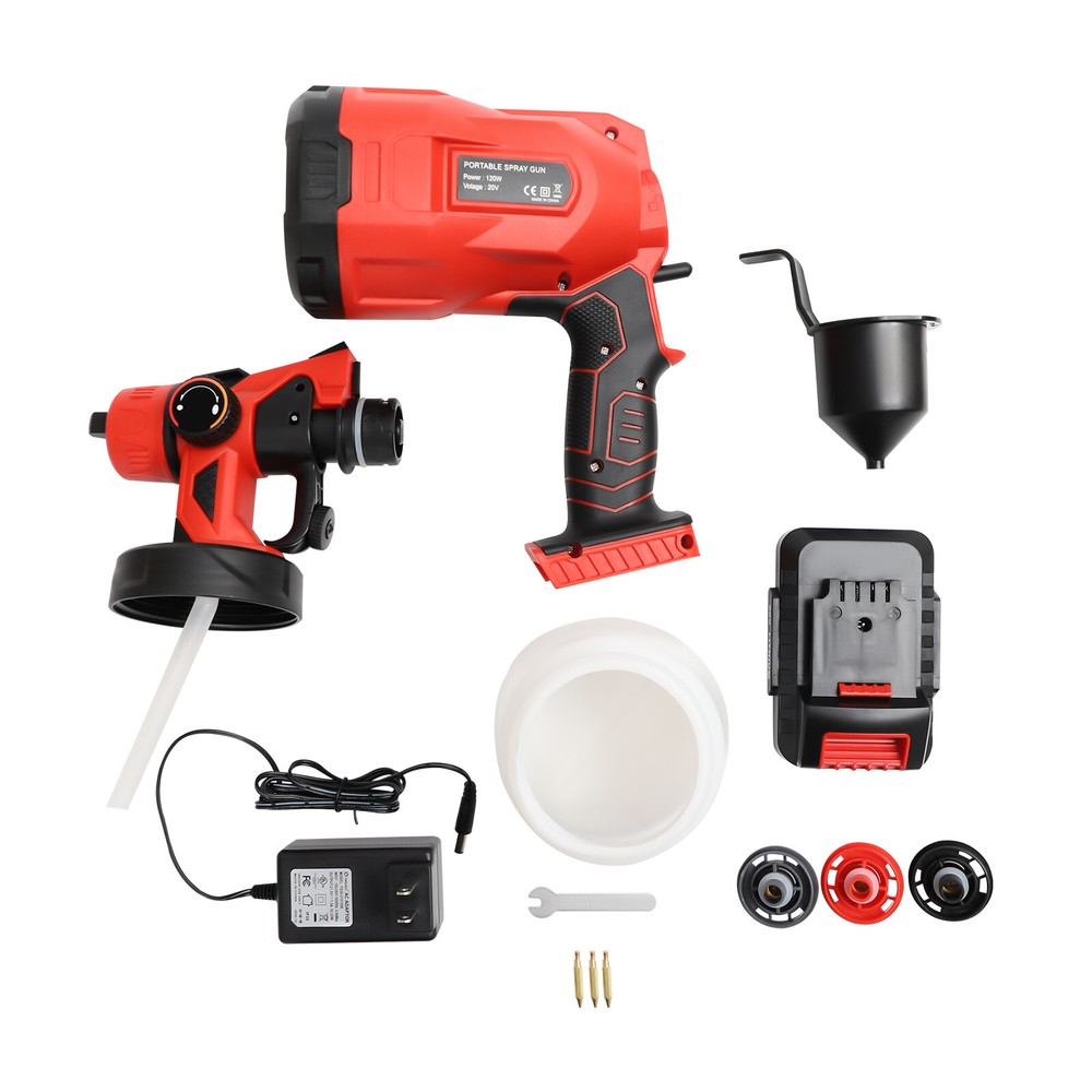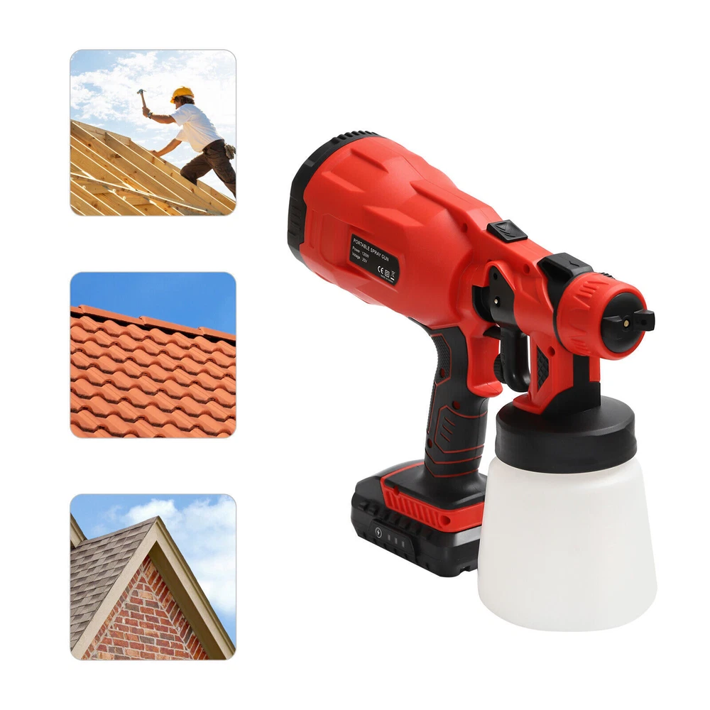 800ML HVLP Paint Sprayer Handheld 120W Electric Spray Gun Tools 3 Spray Patterns DESCRIPTION: A Super Fine Paint Sprayer, Cordless Spray Gun for Countless Painting Projects, 3 Superior Brass Spray Tips, 3 Spray Patterns, 800ml, 160 L/min Application This Product Can Be Used to Spray Paint, Coatings, Formaldehyde Treatment, Family Guardrails, Floors, Furniture, Walls, Vehicles, and Other Surfaces. Key Features ★ Fine Spraying: It is equipped with an atomization adjustment mode to form a fine spray so that the sprayed materials will not have bubbles, and you will save time and energy by covering the spraying area in all directions! ★ Different Sizes of Nozzles: We provide you with three different sizes of nozzles (2.5mm, 1.8mm, 1mm) so that you can choose according to your spraying needs such as furniture, cars, fences, interior walls, garage doors, garden tables and chairs. ★ Multiple Spraying Effects: Each nozzle has three spraying shapes: horizontal, vertical, and dot, which makes it easy to spray horizontal and vertical object surfaces, even edges and corners, bringing you convenience. ★ Convenient to Use: You can adjust the spraying width (20-30cm/7.87-11.81in) and flow (100-200mL/min by adjusting the knob on the machi ne. ★ Move Freely: It uses a lithium battery power supply, so you won't be bound by wires, and you can spray freely even without a socket around! Details 1) Unlock Button: The top of the paint sprayer is designed with an unlock button, which allows you to quickly disassemble the machine and provides convenience for you. 2) Test Funnel: We provide you with a test funnel so that you can test the viscosity of the paint before use so that you can carry out the spraying work more smoothly. Specification Model: Q0P-CX33-380 Color: Red, Black Material: ABS Shell, Copper Core Nozzle, Plastic Spray Jug Usage: Hand-held Voltage: 110V Rated Votage: 18-20V Frequency: 60HZ Rated Speed: 30000rpm Lithium Battery: 20V, 2000mAh Rated Power: 120W Air Flow: 160 L/min Paint Flow: 100-200 ml/min ( 0.026-0.052Gal/ min ) Nozzle Diameter: 2.5mm/ 0.0984in, 1.8mm/ 0.0709in, 1mm/ 0.0394in Spraying Distance: 20-25cm/ 7.87-9.84in Spraying Width: 20-30cm/ 7.87-11.81in Viscosity: 8-12s Spray Jug Capacity: 800ml/ 27.05oz Overall Length of the Product: 29.8cm/ 11.73in Overall Height of the Product: 28cm/ 11.02in Package Size: 26*17*20cm/ 10.24*6.69*7.87in Net Weight: 1.6kg/ 3.53lbs Package Included 1* Paint Sprayer Body 1* Paint Sprayer Head 1* Spray Jug 1* Lithium Battery 1* Charger 1* Funnel 3* Nozzles Other Needed Accessories Notes 1. Please note that it is not recommended to spray emulsion paint on this product, because the effect of spraying will be poor if the dilution is not up to the standard. 2. After receiving the machine, use clean water to test the power and atomization effect of the machine. But please do not test directly with paint or paint. 3. Please adjust the viscosity of the coating before spraying, which is generally applicable to the coating that can flow through the funnel within 20-40s. 4. The spray gun shall be sprayed at a uniform speed. 5. It is recommended to keep the spraying distance about 30cm. 6. When the spray gun is spraying upward, please do not loosen the trigger, or the paint will flow back into the motor, causing damage to the machine. Please do not spray the machine vertically upwards. It is recommended to spray the top at an angle of 45 °. 7. Please clean the spray gun and spray pot in time after use to prevent the nozzle from being blocked due to dry paint. 8. Cleaning Method: put clean water into the watering can and spray it for about 30-60s. Be sure to thoroughly spray the residual dirt in the valve core until clean water is sprayed. DESCRIPTION 2 Welcome to our store for shopping. Our store has a wide range of product categories for you to choose from. Welcome to click on our store to make a purchase or consult us, and we will recommend the products you need.?? ↓↓↓↓↓↓ Payment Delivery details Terms of sales About us Contact us Payment We accept ebay payment 。 Fees such as import duties, taxes are not included in the item price or shipping costs. These charges are the buyer's responsibility. Delivery details Shipping: 2-9 working days to: USA Terms of sales We maintain high standards of excellence and strive for hundred percent customer satisfaction. Feedback is very important to us. We hope that you contact us immediately before you give neutral or negative feedback, so that we can address your concerns. It is impossible to address issues if we do not know about them! About us Your satis faction is our ultimate goal. We work hard to earn your trust and future business. Our certified technicians have tested each item before shipping. The unit comes with 1 year limited warranty on all manufacturing defects. a) If you receive a defective item, you may return it or ask for a discount. Please contact us within 14 days after you receive the package. b) What you returned must be intact and in its original packaging as re? u. Customer is responsible for shipping costs of the returned item. c) We will cover the cost of shipping back t with the shipping rate indicated in the registration page. We will send you a new unit or refund the full payment you paid. Thank you. Contact us Business Hour Business Hour: Monday To Friday: 8:30 AM to 5:00 PM (Beijing China time) Due to time zones, our reply to your questions may not be immediately. But within above working time, we will reply your email within 24 hours. If it's non-workdays, please kindly be patient and wait till Monday. Please contact us with ebay message. Please feel free to contact us if you have any questions. Monday To Friday: 8:30 AM to 5:00 PM (Beijing China time) Due to time zones, our reply to your questions may not be immediately. But within above working time, we will reply your email within 24 hours. If it's non-workdays, please kindly be patient and wait till Monday. Please conta