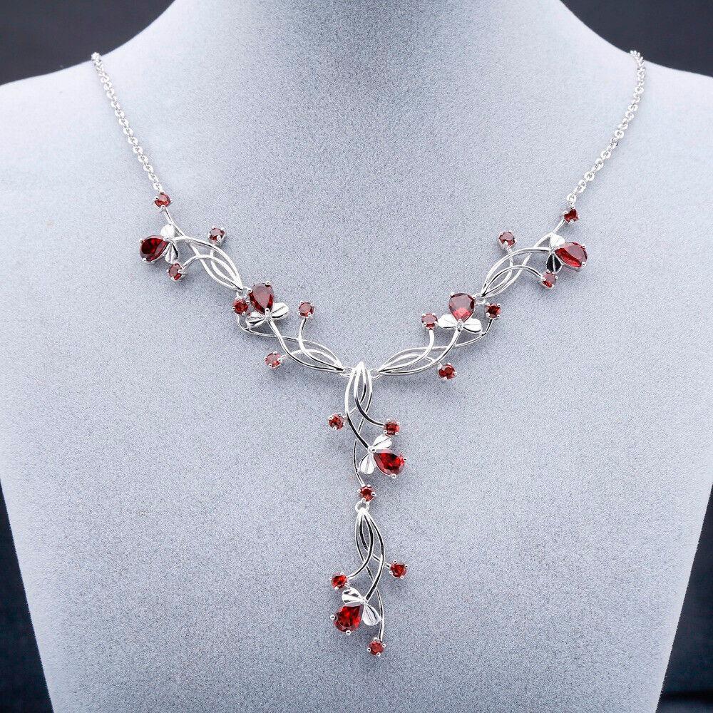 Home8.08ct Natural Red Garnet Handmade Sterling Silver Pendant Necklace