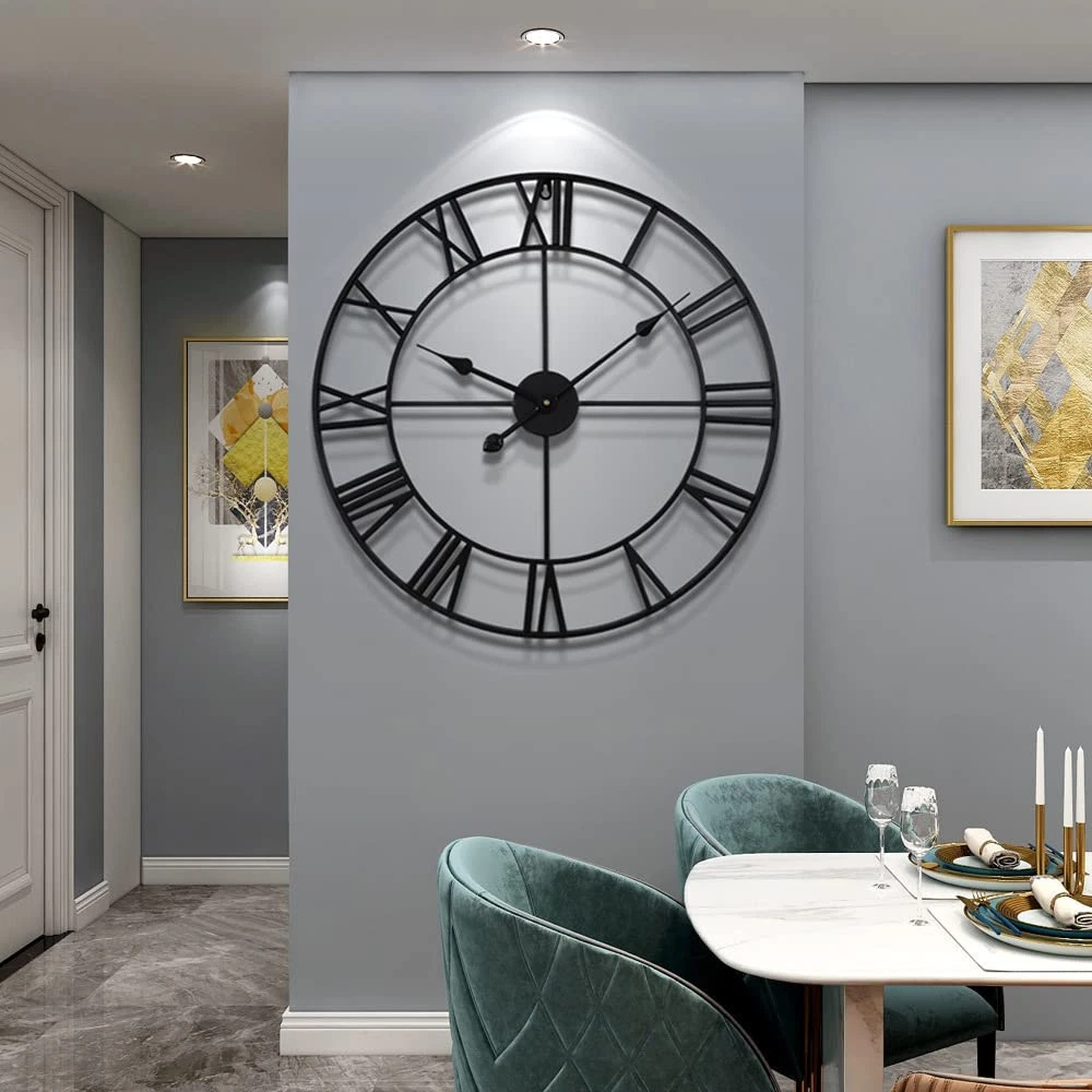 This oversized wall clock is a stunning statement piece! The solid iron frame and hollow design give it a sleek, industrial look while the high-quality quartz movement keeps it nearly silent—no annoying ticking. Perfect for any room, it adds a modern touch to my living space while keeping time accurately. Love the bold Roman numerals and sturdy build—definitely worth it!