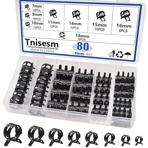 Return Policy Fast Delivery Trusted seller 80Pcs Spring Band Hose Clamps Assortment Kits Silicone Vacuum Hose Pipe Clamp 7mm 9mm 10mm 11mm 14mm 15mm 16mm 18mm Low Pressure Air Clip Clamp(Black) Product Description Made of high quality 65Mn spring steel: durable in use and have a long serving time.nice construction and hold very well. The spring clamps include 7 different diameters clamps to adapt to different hoses: 7mm, 9mm, 10mm, 11mm, 14mm, 15mm, 16mm.Come with a plastic storage box has classification figure inside, could facilitate your storage and classification size. 360 degree inner ring precision design: prevent damage to the pipeline effectively. Smooth inside and will not bite into hose. Release or tighten the bolt to adjust the band diameter range. Spring hose clamps are used in a wide range of applications, suitable for fuel lines/vacuum hoses/gas pipe/air hose/water pipe/silicone hose, great choose for garage, boats, motorcycles, lawn and car engines connection, etc. Shipping Returns Payment Shipping Shipping is FREE to all addresses other than APO/PO boxes in the lower 48 states. All our stock ships from US-based warehouses. Shipped via USPS or UPS (depending on location and package weight) Unless stated otherwise, all orders will ship within 24-72 hours of your payment being processed. Check our feedback to see the great reviews of FAST shipping we offer. Returns Seller does not accept returns Payment We currently accept payment via eBay managed payments only. Once payment is cleared, we will dispatch your shipment within 1-3 business days. Please refer to the "Shipping" tab for more information regarding shipping speed to your destination.