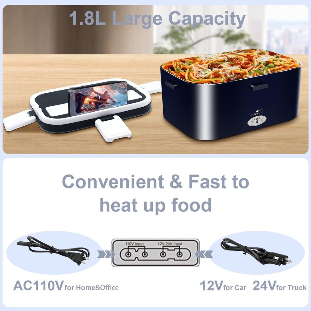 80W Portable Electric Lunch Box-1.8L Large-Capacity Food Heater For Adults-Le... 80W fast heating speed---Our electric heated lunch box is equipped with an upgraded 80W heating power, which can quickly heat food to the appropriate temperature in just 15-30 minutes after plugging in. It retains the original flavor of the food, allowing you to enjoy delicious hot meals during busy workdays. 1.8L upgraded large capacity---Compared to other electric lunch boxes, our heatable lunch box has been upgraded to a large capacity of 1.8L, which can accommodate more food and meet the needs of those with big appetites or multiple meals. It is very suitable for use during work, especially for people who need to work for a long time. Suitable for various occasions---Our heated lunch box is very suitable for use in construction sites, cars, trucks, hospitals, and offices. It is convenient to carry and easy to heat food, tailored for busy modern people. Leak-proof seal and durable portable handle---Our heating lunch box for work is equipped with a leak-proof seal that will not leak food, as well as a durable portable handle that is easy to carry and use. You can take it anywhere and enjoy your favorite food without worrying about food leakage. Stainless steel inner is easy to clean---Our car food warmer uses a stainless steel inner pot that is easy to clean and maintain hygiene. At the same time, the stainless steel material can effectively retain the nutrition and flavor of the food. Comes with a portable bag and utensils---Our portable food warmer also comes with a portable bag that is convenient to carry, and utensils that are easy to use. You can easily put the heater and utensils in the portable bag and carry them anywhere, but also provides protection against rain and dust, making it particularly suitable for people who work outdoors. The best gifts---Our electric lunchbox is not only a practical work companion, but also the best gift for your husband or friend. Whether it's for a birthday, holiday, or anniversary, this electric lunchbox is the perfect choice. Shipping We offer FREE shipping on all orders! We ship within Three business days of payment, usually sooner. Local pickups and combined shipping options are not provided at this time. Return You can return a product for up to 30 days from the date you purchased it. Any product you return must be in the same condition you received it and in the original packaging. Please keep the receipt. Payment We accept payment by any of the following methods: PayPal Please pay as soon as possible after winning an auction, as that will allow us to post your item to you sooner! Feedback Customer satisfaction is very important to us. If you have any problem with your order, please contact us and we will do our best to make you satisfied. Contact Us If you have any queries, please contact us via ebay. We usually respond within 24 hours on weekdays. Please visit our eBay store to check out other items for sale! Thank you for shopping at our store.
