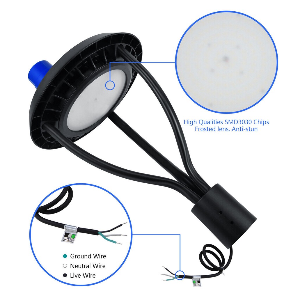Product Description 80W LED Garden Area Lights Outdoor IP56 Waterproof Light Fixture With Photocell Light Up Larger Area - The 80w light post bring 10800Lm with SMD3030 chips, up to 135lm/watt, AC 100-277V universal voltage and 120°beam angle. 5000K color temperature of lighting is a nice choice for street light illumination. Anti-shock, anti-moisture, no glare, no strobe light, no ghosting, protecting your eyes. Dust to Dawn Photocell - The Led circular post top pole light comes with photocell sensor outside automatically turns ON at sundown/night and light post at sunrise/daytime with dusk to dawn, high power factor >0.9, more than 50000hours lifespan, reduce your electricity consumption, save your electronic bill. Provides a continuous, efficient outdoor lighting environment. Commercial Grade Material - The DLC/ETL Listed post pole light fixture made of die-casting aluminum body + protective glass cover. The scientific design helps the exterior light post top to dissipate better, achieve the best use of the led lighting post. IP65 waterproof for drying, wet environment, sandstorms, snowstorms, and harsh weather conditions. Wide Application - The circular post top design give the lamp a uniform brightness and can be applied to a variety of outdoor scences, such as pathway, street, front yard, city expressway, trunk/rustic road, factories, playground, school, garden, courtyard, parking lot, public park, walkway, exterior, driveway, store, farmyard or any other commercial and industrial area. Installation and Warranty - The pole mount of our post area light fits for a 2 3/8-inch OD tenon & less than or equal to 3 inch standard pole, very easy to install and transfor(Please see the video on the product page for more installation info). KUKUPPO offer you lasting safety and reliability backed by a 5-year warranty. For a bulk order, email us in advance to get a different offer. Specifications: Rated Wattage: 80W Luminous Flux: 10800Lm Color Temperature: 5000K Protection Grade: IP65 Material : Aluminum Body+Glass Cover Input Voltage : AC100-277V 50/60Hz Dimension: Dia 460x625 mm Base: 2 Pins Wire Power Factor: >90% Beam Angle : 120 degrees Average Lifetime : More than 50000 hours Flexible Installation The pole mount of our post area light fits for a 2 3/8-inch OD tenon & less than or equal to 3 inch standard pole, very easy to install and transfor Commercial Grade Material DLC/ETL Listed quality. Scientific design helps the exterior light post top to dissipate better, achieve the best use of the led lighting post. Durable Support Rod Made of thick aluminum, stable and strong, waterproof and rustproof. High performance quality provides with lasting safety and reliability. Ultra Bright LED Chips With SMD3030 chips, up to 140lm/watt. Anti-shock, anti-moisture, no glare, no strobe light, no ghosting, protecting your eyes. Kindly Note Please note that the light can not be used IN the water. Please confirm the wire connection is right while installing. About Us Payment Shipping Returns Contact Us SHENZHEN NUOGUAN TECHNOLOGY CO. LTD founded in 2010. We are high-technology comany specialized in manufacture Commercial and industrial LED light. Advanced production equipment and excellend R&D ability help us to combining service ,production sell together provide top-level products to our customers. 1. Payment is expected within 7 days of auction close. Or Unpaid Items will be forfeited per eBay . 2. Taxes may be applicable at checkout as states adopt new laws and regulations regarding sales tax collection. 1. We ONLY ship to USA . 2. Orders processed within 1-2 business day of payment verification. There’s no Delivery service or courier service on Saturdays, Sundays or Public Holidays. 3. We have 3 different warehouse in US,so due to stock status and time differences, we will choose to ship your item from our first available warehouse for fast delivery. 4. We offer Free Shipping within the Lower 48 states! All packages are sent via UPS or USPS.The delivery time for UPS Ground is typically 2-5 business days. We strive to ensure 100% satisfaction for each and every one of our customers. we offer a 30-day 100% money-back guarantee on all eBay orders. If your item isn't just as you wished, simply send it back to us and we'll refund or replace your item. Please note that all returns must be authorized by our Customer Service department. please contact us though message first if you have any problem. USA Warehouse. Fast shipping! We are appreciated your purchasing form our eBay store. Office Time: 9:30 - 18:30, Monday - Saturday (UTC+8) Please contact us with eBay Message. We will respond you within 24 hours on business day. About Us SHENZHEN NUOGUAN TECHNOLOGY CO. LTD founded in 2010. We are high-technology comany specialized in manufacture Commercial and industrial LED light. Advanced production equipment and excellend R&D ability help us to combining service ,production sell together provide top-level products to our customers. Payment 1. Payment is expected within 7 days of auction close. Or Unpaid Items will be forfeited per eBay . 2. Taxes may be applicable at checkout as states adopt new laws and regulations regarding sales tax collection. Shipping 1. We ONLY ship to USA . 2. Orders processed within 1-2 business day of payment verification. There’s no Delivery service or courier service on Saturdays, Sundays or Public Holidays. 3. We have 3 different warehouse in US,so due to stock status and time differences, we will choose to ship your item from our first available warehouse for fast delivery. 4. We offer Free Shipping within the Lower 48 states! All packages are sent via UPS or USPS.The delivery time for UPS Ground is typically 2-5 business days. Returns We strive to ensure 100% satisfaction for each and every one of our customers. we offer a 30-day 100% money-back guarantee on all eBay orders. If your item isn't just as you wished, simply send it back to us and we'll refund or replace your ite