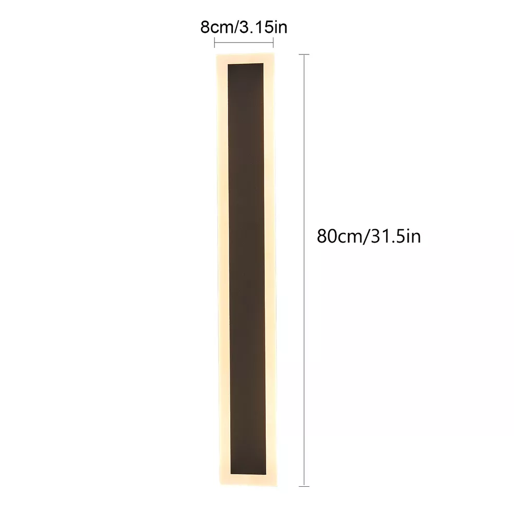 LED Wall Light 80cm Waterproof Outdoor Modern Lamp Exterior Lights Long Strip Description This wall lamp has an acrylic shade and an iron base with a high-temperature painting treatment, making it anti-rust, waterproof, and corrosion-resistant to be used indoors and outdoors. With its elegant appearance and exquisite design, this wall lamp can not only illuminate your doorway but also play a decorative role. Choose our wall lamp, you can have a warm guardian that guards your home every night. Key Features Premium Material: This wall lamp consists of an iron base with high-temperature painting treatment and high-quality acrylic shade, making it anti-rust, corrosion-resistant, and not easy to oxidize. Enjoy Your Night: With this wall lamp installed on your porch, you can enjoy the moonlight as night falls, have a tea/coffee time for relaxation and play snow with your family or friends under the lighting from this wall lamp after dinner, just like a close friend who accompanies you. Elegant Appearance: A black iron base mixed with white shade elevates the wall lamp to the epitome of simple but stylish that fits any decor, adding elegance and beauty to your porch. Considerate Design: The long LED wall lamp will produce soft and romantic light at 3000k color temperature without flickering to protect your eyes. High Waterproof Performance : Its IP65 grade waterproof allows for a wide application and long service life. You can use it indoors or outdoors. Flexible Installation : You need to connect the wire reserved on the wall to install this wall lamp horizontally and vertically. And you can do a DIY installation with more than one of these products. Easy to Clean: Due to its smooth surface with high-temperature painting treatment, you can wipe the dirt from it with a cloth. Ideal Gift: Thanks to its exquisite design, elegant appearance, and great lighting effect, you can choose this wall lamp as a gift for housewarming to your friends. Protective Package: To prevent the product from being damaged and bumped during transportation, we packed it with foam to protect your products to the maximum extent possible. Details Sturdy Base: The rectangular black base of 1.81*1.18 inches in size ensures stable support for the light body and present classic beauty. LED Chip: The 18W LED light source has high luminous efficiency, low calorific value, and long service life, making it energy-saving and safe to use. You also don't need to install the bulbs. Application It is suitable for aisles, garages, porches, patios, front doors, hallways, doorways, verandas, courtyards, entryways, corridors, backyards, sunrooms, bathrooms, sheds, and any other indoor/outdoor places. And its illumination area is about 161.4-215.3ft². How to Install Cut off the power. Drill a small hole in the wall. Fix the hanging bracket with the included self-tapping screws. Connect live, neutral, and ground to main power. Fasten the wall lamp to the bracket on the wall with black screws. Turn on the power and turn on the lights. Specifications Model: CT03 Color: Black, White Material: Iron, Acrylic Process: High-temperature Painting Shape: Rectangle Feature: Waterproof Mounting Type: Wall-mounted Installation: Hard-wired Room Type: Entryway, Garage, Porch Usage: Indoor&Outdoor Use Power Source: AC, Corded-electric Light Fixture Form: Wall Sconce Lighting Method: Downlight Light Source: 18W LED Chip Efficiency: E Lifespan: 50,000H Voltage: 90-260V Lumen: 3250Lumen Color Temperature: 3000K Warm Light Illumination Area: 15-20m²/161.4-215.3ft² Base Size (L*W): 4.6*3cm/1.81*1.18inch Product Size (L*W): 80*8cm/31.5*3.15inch Package Included 1* Wall Lamp Other Accessories for Assembly Notes Please check the size of the lamp before purchasing, and compare the specific conditions of the installation location to see if it is appropriate. It's best to space them 6 to 8 feet apart and not near other light sources (such as streetlights) to ensure a good lighting effect. Please cut off the power before installation. It is recommended to be installed by a professional electrician. It is waterproof, but it cannot be soaked in water. The wall lamp is not dimmable. It is directly wired for use. Please allow the slight color difference caused by the shooting light and 1-3cm error due to manual measurement, and make sure you do not mind before you order. Payment Delivery details Terms of sales About us Contact us Payment We accept ebay payment 。 Fees such as import duties, taxes are not included in the item price or shipping costs. These charges are the buyer's responsibility. Delivery details Shipping: 2-9 working days to: USA Terms of sales We maintain high standards of excellence and strive for hundred percent customer satisfaction. Feedback is very important to us. We hope that you contact us immediately before you give neutral or negative feedback, so that we can address your concerns. It is impossible to address issues if we do not know about them! About us Your satis faction is our ultimate goal. We work hard to earn your trust and future business. Our certified technicians have tested each item before shipping. The unit comes with 1 year limited warranty on all manufacturing defects. a) If you receive a defective item, you may return it or ask for a discount. Please contact us within 14 days after you receive the package. b) What you returned must be intact and in its original packaging as re? u. Customer is responsible for shipping costs of the returned item. c) We will cover the cost of shipping back t with the shipping rate indicated in the registration page. We will send you a new unit or refund the full payment you paid. Thank you. Contact us Business Hour Business Hour: Monday To Friday: 8:30 AM to 5:00 PM (Beijing China time) Due to time zones, our reply to your questions may not be immediately. But within above working time, we will reply your email within 24 hours. If it's non-workdays, please kindly be patient and wait till Monday. P