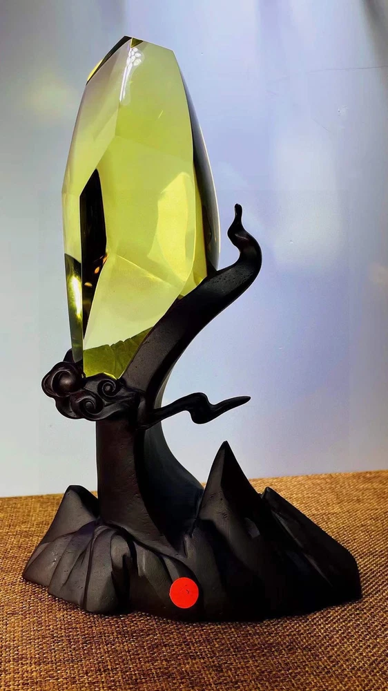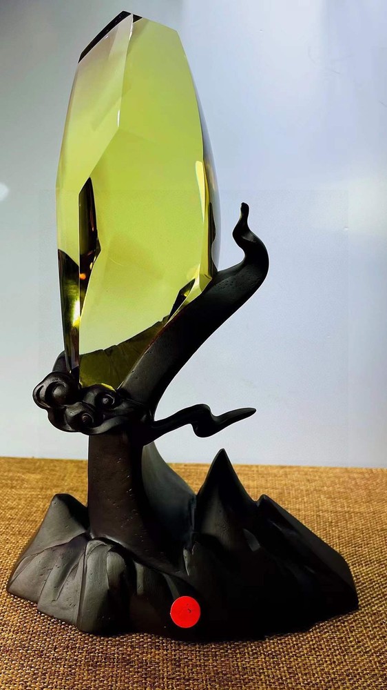 822g Rare Natural Citrine Quartz Crystal Specimen with Stand for Reiki Healing and Home Décor