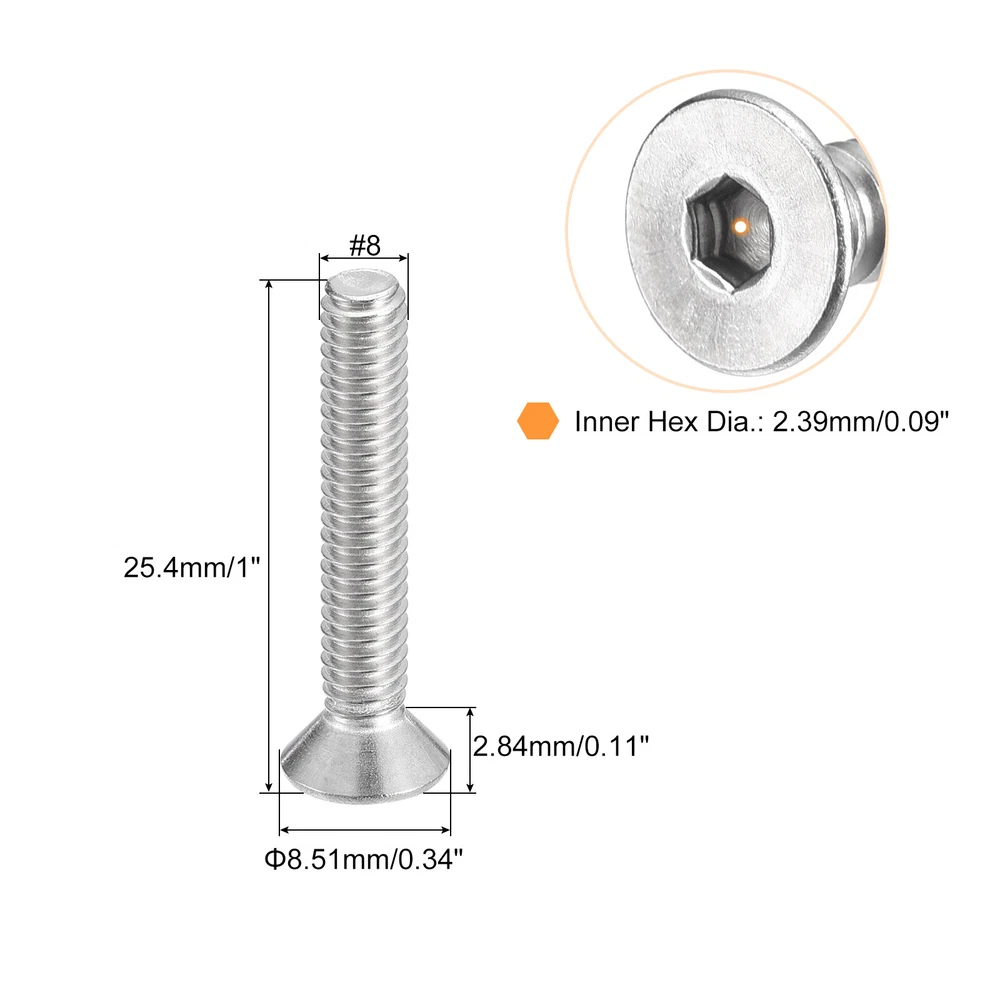 Document Description:Material: These flat head screws are made of 304 Stainless Steel which is one of the highest forms of corrosion-resistant metals, making it last longer than other hardware on the market today.Feature: Our flat head machine screws are very strong and are great for both indoor and outdoor use. This stainless is superior to regular steel and provides excellent rust resistance.Function: The flat-head socket cap screws are great to have around for use in wet environments and have strong oxidation resistance. They are strong, corrosion-resistant, and will support all of your projects.Application: Wind power industry, aerospace industry, office equipment industry, petrochemical industry, electronics industry, communications industry, shipbuilding industry, machinery, etc.Specification:Product Name: Flat Head Hex Socket Cap ScrewColor: Silver ToneModel: #8-32x1"Material: 304 Stainless steelScrew Total Length: 25.4mm/1"Inner Hex Dia.: 2.39mm/0.09"Screw Head Size: 8.51x2.84mm/0.34"x0.11"(D*T)Screw Groove Type: Inner HexPackage Content:100Pcsx Flat Head Hex Socket Cap Screw #8-32x1" Flat Head Socket Cap Screws, 304 Stainless Steel Fasteners 100Pcs Description: Material: These flat head screws are made of 304 Stainless Steel which is one of the highest forms of corrosion-resistant metals, making it last longer than other hardware on the market today. Feature: Our flat head machine screws are very strong and are great for both indoor and outdoor use. This stainless is superior to regular steel and provides excellent rust resistance. Function: The flat-head socket cap screws are great to have around for use in wet environments and have strong oxidation resistance. They are strong, corrosion-resistant, and will support all of your projects. Application: Wind power industry, aerospace industry, office equipment industry, petrochemical industry, electronics industry, communications industry, shipbuilding industry, machinery, etc. Specification: Product Name: Flat Head Hex Socket Cap Screw Color: Silver Tone Model: #8-32x1" Material: 304 Stainless steel Screw Total Length: 25.4mm/1" Inner Hex Dia.: 2.39mm/0.09" Screw Head Size: 8.51x2.84mm/0.34"x0.11"(D*T) Screw Groove Type: Inner Hex Package Content: 100Pcsx Flat Head Hex Socket Cap Screw Hot Item Payment 1.We accept eBay payment . 2.Payment must be received within 7 business days of auction closing. Shipping 1.We ship to your eBay or Paypal address. Please make sure your eBay and Paypal address is correct before you pay. 2.Items will be shipped within 1-3 business day when we received payment. 3.Delivery time depends on destination and other factors. Description Policy #8-32x1" Flat Head Socket Cap Screws, 304 Stainless Steel Fasteners 100Pcs Description: Material: These flat head screws are made of 304 Stainless Steel which is one of the highest forms of corrosion-resistant metals, making it last longer than other hardware on the market today. Feature: Our flat head machine screws are very strong and are great for both indoor and outdoor use. This stainless is superior to regular steel and provides excellent rust resistance. Function: The flat-head socket cap screws are great to have around for use in wet environments and have strong oxidation resistance. They are strong, corrosion-resistant, and will support all of your projects. Application: Wind power industry, aerospace industry, office equipment industry, petrochemical industry, electronics industry, communications industry, shipbuilding industry, machinery, etc. Specification: Product Name: Flat Head Hex Socket Cap Screw Color: Silver Tone Model: #8-32x1" Material: 304 Stainless steel Screw Total Length: 25.4mm/1" Inner Hex Dia.: 2.39mm/0.09" Screw Head Size: 8.51x2.84mm/0.34"x0.11"(D*T) Screw Groove Type: Inner Hex Package Content: 100Pcsx Flat Head Hex Socket Cap Screw Hot Item Payment 1.We accept eBay payment . 2.Payment must be received within 7 business days of auction closing. Shipping 1.We ship to your eBay or Paypal address. Please make sure your eBay and Paypal address is correct before you pay. 2.Items will be shipped within 1-3 business day when we received payment. 3.Delivery time depends on destination and other factors.
