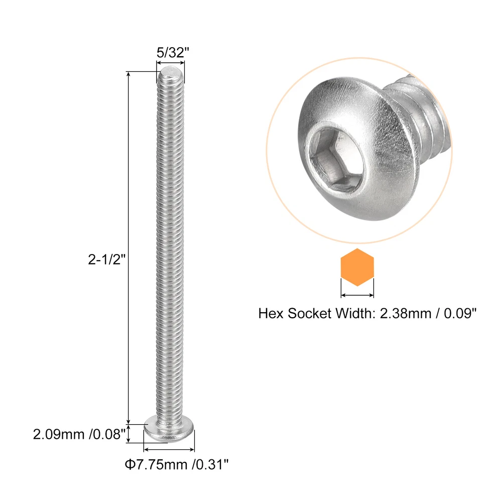 Document Description:1. Material: The button head socket cap screws are made of 304 stainless steel, which provides good corrosion resistance, durability, and long-lasting performance.2. Design: This socket head cap screw features a design with a hexagonal drive hole and a button head that provides better torque transmission and more stable performance.3. Usage Method: To use the hexagon socket head screw, insert the screw into a pre-drilled hole and turn it clockwise using a wrench. The hexagonal drive hole ensures that the drive tool will not slip or strip, providing a reliable and secure connection.4. Application: These hex socket head cap screws are suitable for various applications such as machinery, electronics, construction, and furniture assembly. Its strength, durability, and resistance to corrosion and rust make it good for indoor and outdoor use in harsh environments.Specification:Product Name: Machine Screws BoltsMaterial: 304 Stainless SteelModel:#8-32x2-1/2"Screw Rod Length: 2-1/2"Thread Diameter: 5/32"Hex Socket Width: 2.38mm / 0.09"Screw Head Size: 7.75mm x 2.09mm / 0.31" x 0.08"(Dia. x H)Applicable Wrench: 3/32"Screw Groove Type: Hex SocketPackage Content:20pcsx Button Head Socket Cap Screws #8-32x2-1/2" Button Head Socket Cap Screws, 20pcs 304 Stainless Steel Screws Description: 1. Material: The button head socket cap screws are made of 304 stainless steel, which provides good corrosion resistance, durability, and long-lasting performance. 2. Design: This socket head cap screw features a design with a hexagonal drive hole and a button head that provides better torque transmission and more stable performance. 3. Usage Method: To use the hexagon socket head screw, insert the screw into a pre-drilled hole and turn it clockwise using a wrench. The hexagonal drive hole ensures that the drive tool will not slip or strip, providing a reliable and secure connection. 4. Application: These hex socket head cap screws are suitable for various applications such as machinery, electronics, construction, and furniture assembly. Its strength, durability, and resistance to corrosion and rust make it good for indoor and outdoor use in harsh environments. Specification : Product Name: Machine Screws Bolts Material: 304 Stainless Steel Model:#8-32x2-1/2" Screw Rod Length: 2-1/2" Thread Diameter: 5/32" Hex Socket Width: 2.38mm / 0.09" Screw Head Size: 7.75mm x 2.09mm / 0.31" x 0.08"(Dia. x H) Applicable Wrench: 3/32" Screw Groove Type: Hex Socket Package Content: 20pcsx Button Head Socket Cap Screws Hot Item Payment 1.We accept eBay payment . 2.Payment must be received within 7 business days of auction closing. Shipping 1.We ship to your eBay or Paypal address. Please make sure your eBay and Paypal address is correct before you pay. 2.Items will be shipped within 1-3 business day when we received payment. 3.Delivery time depends on destination and other factors. Description Policy #8-32x2-1/2" Button Head Socket Cap Screws, 20pcs 304 Stainless Steel Screws Description: 1. Material: The button head socket cap screws are made of 304 stainless steel, which provides good corrosion resistance, durability, and long-lasting performance. 2. Design: This socket head cap screw features a design with a hexagonal drive hole and a button head that provides better torque transmission and more stable performance. 3. Usage Method: To use the hexagon socket head screw, insert the screw into a pre-drilled hole and turn it clockwise using a wrench. The hexagonal drive hole ensures that the drive tool will not slip or strip, providing a reliable and secure connection. 4. Application: These hex socket head cap screws are suitable for various applications such as machinery, electronics, construction, and furniture assembly. Its strength, durability, and resistance to corrosion and rust make it good for indoor and outdoor use in harsh environments. Specification : Product Name: Machine Screws Bolts Material: 304 Stainless Steel Model:#8-32x2-1/2" Screw Rod Length: 2-1/2" Thread Diameter: 5/32" Hex Socket Width: 2.38mm / 0.09" Screw Head Size: 7.75mm x 2.09mm / 0.31" x 0.08"(Dia. x H) Applicable Wrench: 3/32" Screw Groove Type: Hex Socket Package Content: 20pcsx Button Head Socket Cap Screws Hot Item Payment 1.We accept eBay payment . 2.Payment must be received within 7 business days of auction closing. Shipping 1.We ship to your eBay or Paypal address. Please make sure your eBay and Paypal address is correct before you pay. 2.Items will be shipped within 1-3 business day when we received payment. 3.Delivery time depends on destination and other factors.