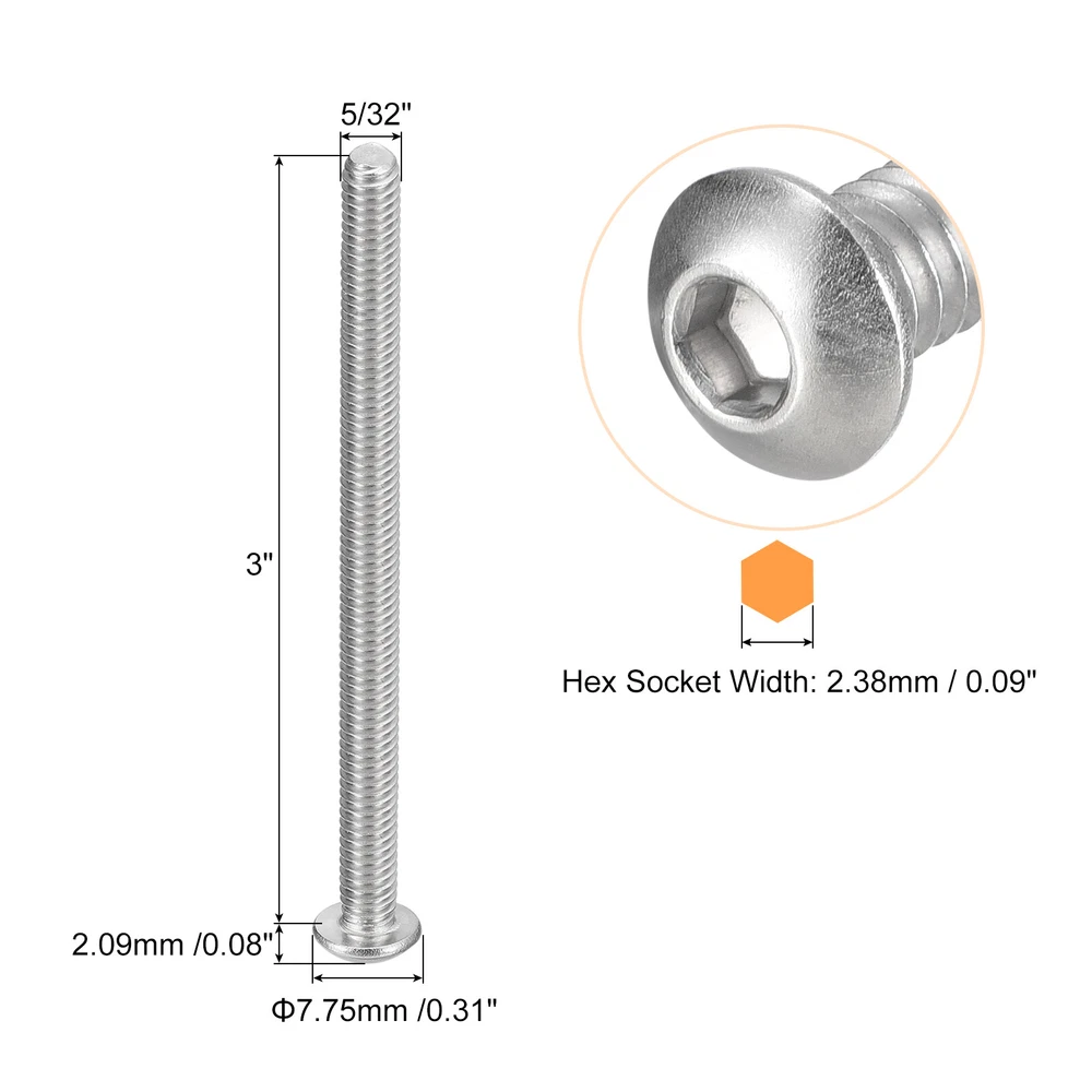 Document Description:1. Material: The button head socket cap screws are made of 304 stainless steel, which provides good corrosion resistance, durability, and long-lasting performance.2. Design: This socket head cap screw features a design with a hexagonal drive hole and a button head that provides better torque transmission and more stable performance.3. Usage Method: To use the hexagon socket head screw, insert the screw into a pre-drilled hole and turn it clockwise using a wrench. The hexagonal drive hole ensures that the drive tool will not slip or strip, providing a reliable and secure connection.4. Application: These hex socket head cap screws are suitable for various applications such as machinery, electronics, construction, and furniture assembly. Its strength, durability, and resistance to corrosion and rust make it good for indoor and outdoor use in harsh environments.Specification:Product Name: Machine Screws BoltsMaterial: 304 Stainless SteelModel:#8-32x3"Screw Rod Length: 3"Thread Diameter: 5/32"Hex Socket Width: 2.38mm / 0.09"Screw Head Size: 7.75mm x 2.09mm / 0.31" x 0.08"(Dia. x H)Applicable Wrench: 3/32"Screw Groove Type: Hex SocketPackage Content:20pcsx Button Head Socket Cap Screws #8-32x3" Button Head Socket Cap Screws, 20pcs 304 Stainless Steel Screws Description: 1. Material: The button head socket cap screws are made of 304 stainless steel, which provides good corrosion resistance, durability, and long-lasting performance. 2. Design: This socket head cap screw features a design with a hexagonal drive hole and a button head that provides better torque transmission and more stable performance. 3. Usage Method: To use the hexagon socket head screw, insert the screw into a pre-drilled hole and turn it clockwise using a wrench. The hexagonal drive hole ensures that the drive tool will not slip or strip, providing a reliable and secure connection. 4. Application: These hex socket head cap screws are suitable for various applications such as machinery, electronics, construction, and furniture assembly. Its strength, durability, and resistance to corrosion and rust make it good for indoor and outdoor use in harsh environments. Specification : Product Name: Machine Screws Bolts Material: 304 Stainless Steel Model:#8-32x3" Screw Rod Length: 3" Thread Diameter: 5/32" Hex Socket Width: 2.38mm / 0.09" Screw Head Size: 7.75mm x 2.09mm / 0.31" x 0.08"(Dia. x H) Applicable Wrench: 3/32" Screw Groove Type: Hex Socket Package Content: 20pcsx Button Head Socket Cap Screws Hot Item Payment 1.We accept eBay payment . 2.Payment must be received within 7 business days of auction closing. Shipping 1.We ship to your eBay or Paypal address. Please make sure your eBay and Paypal address is correct before you pay. 2.Items will be shipped within 1-3 business day when we received payment. 3.Delivery time depends on destination and other factors. Description Policy #8-32x3" Button Head Socket Cap Screws, 20pcs 304 Stainless Steel Screws Description: 1. Material: The button head socket cap screws are made of 304 stainless steel, which provides good corrosion resistance, durability, and long-lasting performance. 2. Design: This socket head cap screw features a design with a hexagonal drive hole and a button head that provides better torque transmission and more stable performance. 3. Usage Method: To use the hexagon socket head screw, insert the screw into a pre-drilled hole and turn it clockwise using a wrench. The hexagonal drive hole ensures that the drive tool will not slip or strip, providing a reliable and secure connection. 4. Application: These hex socket head cap screws are suitable for various applications such as machinery, electronics, construction, and furniture assembly. Its strength, durability, and resistance to corrosion and rust make it good for indoor and outdoor use in harsh environments. Specification : Product Name: Machine Screws Bolts Material: 304 Stainless Steel Model:#8-32x3" Screw Rod Length: 3" Thread Diameter: 5/32" Hex Socket Width: 2.38mm / 0.09" Screw Head Size: 7.75mm x 2.09mm / 0.31" x 0.08"(Dia. x H) Applicable Wrench: 3/32" Screw Groove Type: Hex Socket Package Content: 20pcsx Button Head Socket Cap Screws Hot Item Payment 1.We accept eBay payment . 2.Payment must be received within 7 business days of auction closing. Shipping 1.We ship to your eBay or Paypal address. Please make sure your eBay and Paypal address is correct before you pay. 2.Items will be shipped within 1-3 business day when we received payment. 3.Delivery time depends on destination and other factors.