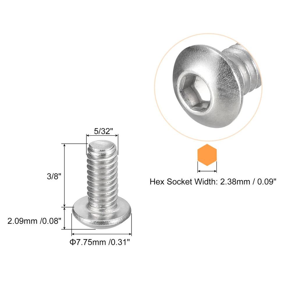 Document Description:1. Material: The button head socket cap screws are made of 304 stainless steel, which provides good corrosion resistance, durability, and long-lasting performance.2. Design: This socket head cap screw features a design with a hexagonal drive hole and a button head that provides better torque transmission and more stable performance.3. Usage Method: To use the hexagon socket head screw, insert the screw into a pre-drilled hole and turn it clockwise using a wrench. The hexagonal drive hole ensures that the drive tool will not slip or strip, providing a reliable and secure connection.4. Application: These hex socket head cap screws are suitable for various applications such as machinery, electronics, construction, and furniture assembly. Its strength, durability, and resistance to corrosion and rust make it good for indoor and outdoor use in harsh environments.Specification:Product Name: Machine Screws BoltsMaterial: 304 Stainless SteelModel:#8-32x3/8"Screw Rod Length: 3/8"Thread Diameter: 5/32"Hex Socket Width: 2.38mm / 0.09"Screw Head Size: 7.75mm x 2.09mm / 0.31" x 0.08"(Dia. x H)Applicable Wrench: 3/32"Screw Groove Type: Hex SocketPackage Content:50pcsx Button Head Socket Cap Screws #8-32x3/8" Button Head Socket Cap Screws, 50pcs 304 Stainless Steel Screws Description: 1. Material: The button head socket cap screws are made of 304 stainless steel, which provides good corrosion resistance, durability, and long-lasting performance. 2. Design: This socket head cap screw features a design with a hexagonal drive hole and a button head that provides better torque transmission and more stable performance. 3. Usage Method: To use the hexagon socket head screw, insert the screw into a pre-drilled hole and turn it clockwise using a wrench. The hexagonal drive hole ensures that the drive tool will not slip or strip, providing a reliable and secure connection. 4. Application: These hex socket head cap screws are suitable for various applications such as machinery, electronics, construction, and furniture assembly. Its strength, durability, and resistance to corrosion and rust make it good for indoor and outdoor use in harsh environments. Specification : Product Name: Machine Screws Bolts Material: 304 Stainless Steel Model:#8-32x3/8" Screw Rod Length: 3/8" Thread Diameter: 5/32" Hex Socket Width: 2.38mm / 0.09" Screw Head Size: 7.75mm x 2.09mm / 0.31" x 0.08"(Dia. x H) Applicable Wrench: 3/32" Screw Groove Type: Hex Socket Package Content: 50pcsx Button Head Socket Cap Screws Hot Item Payment 1.We accept eBay payment . 2.Payment must be received within 7 business days of auction closing. Shipping 1.We ship to your eBay or Paypal address. Please make sure your eBay and Paypal address is correct before you pay. 2.Items will be shipped within 1-3 business day when we received payment. 3.Delivery time depends on destination and other factors. Description Policy #8-32x3/8" Button Head Socket Cap Screws, 50pcs 304 Stainless Steel Screws Description: 1. Material: The button head socket cap screws are made of 304 stainless steel, which provides good corrosion resistance, durability, and long-lasting performance. 2. Design: This socket head cap screw features a design with a hexagonal drive hole and a button head that provides better torque transmission and more stable performance. 3. Usage Method: To use the hexagon socket head screw, insert the screw into a pre-drilled hole and turn it clockwise using a wrench. The hexagonal drive hole ensures that the drive tool will not slip or strip, providing a reliable and secure connection. 4. Application: These hex socket head cap screws are suitable for various applications such as machinery, electronics, construction, and furniture assembly. Its strength, durability, and resistance to corrosion and rust make it good for indoor and outdoor use in harsh environments. Specification : Product Name: Machine Screws Bolts Material: 304 Stainless Steel Model:#8-32x3/8" Screw Rod Length: 3/8" Thread Diameter: 5/32" Hex Socket Width: 2.38mm / 0.09" Screw Head Size: 7.75mm x 2.09mm / 0.31" x 0.08"(Dia. x H) Applicable Wrench: 3/32" Screw Groove Type: Hex Socket Package Content: 50pcsx Button Head Socket Cap Screws Hot Item Payment 1.We accept eBay payment . 2.Payment must be received within 7 business days of auction closing. Shipping 1.We ship to your eBay or Paypal address. Please make sure your eBay and Paypal address is correct before you pay. 2.Items will be shipped within 1-3 business day when we received payment. 3.Delivery time depends on destination and other factors.
