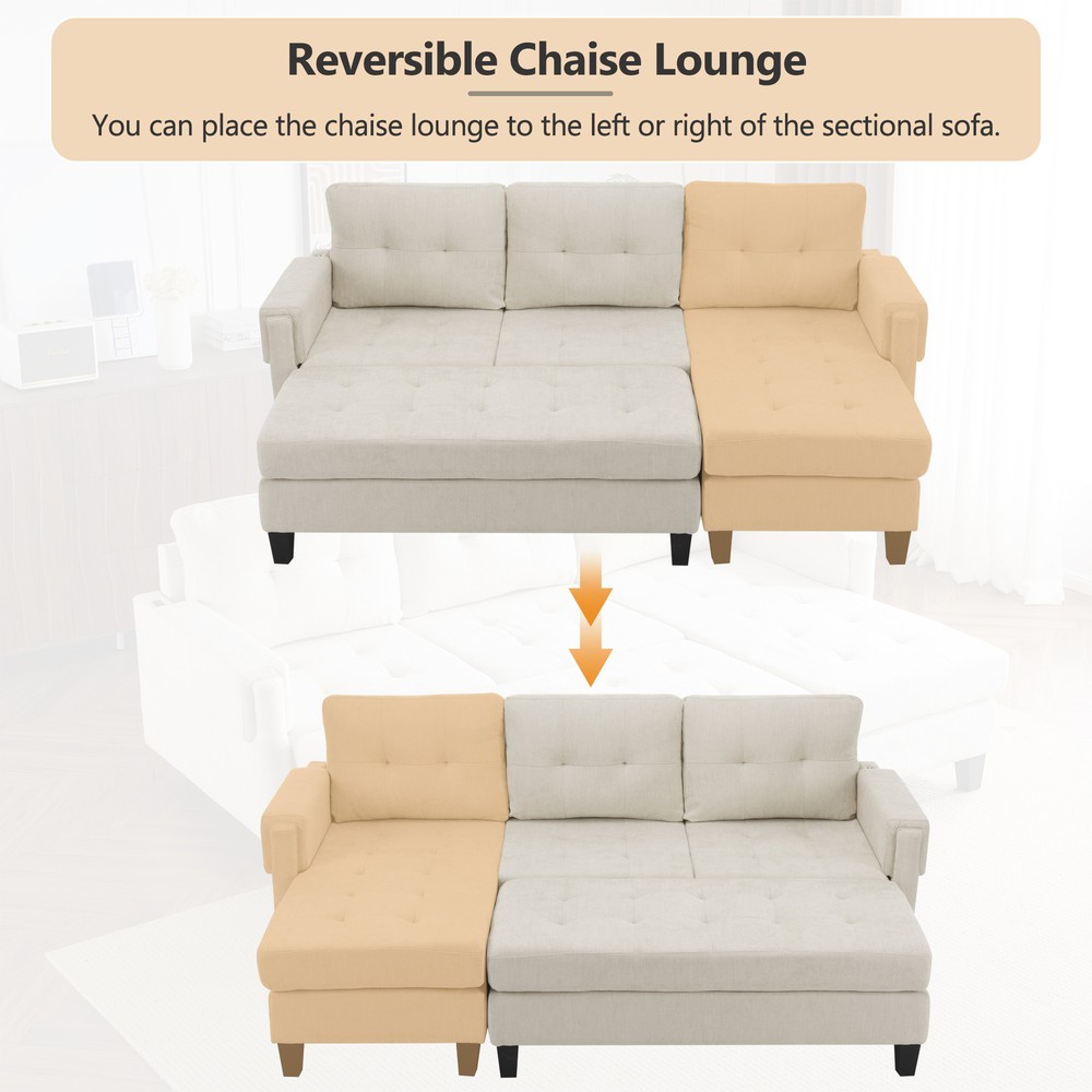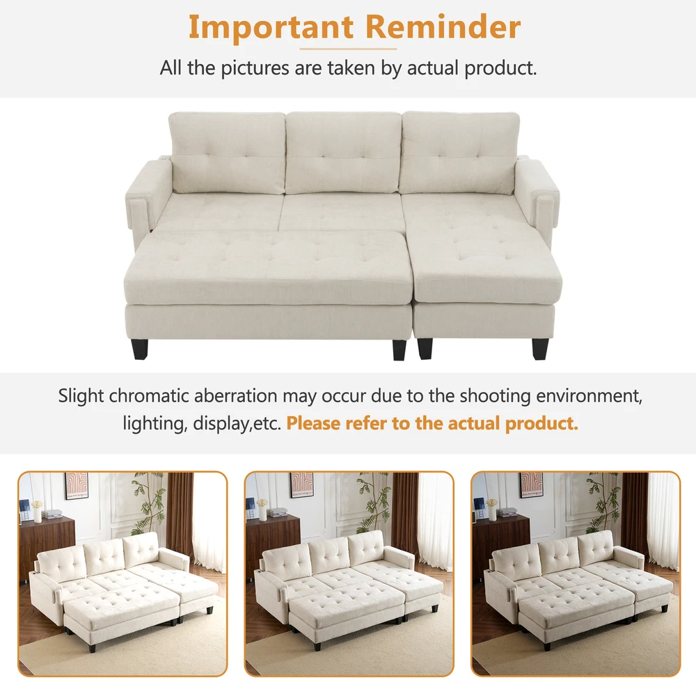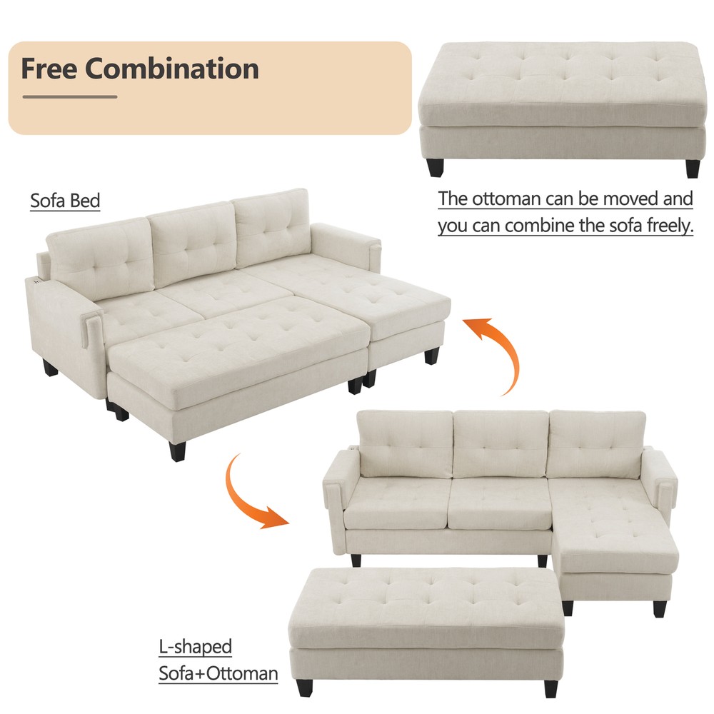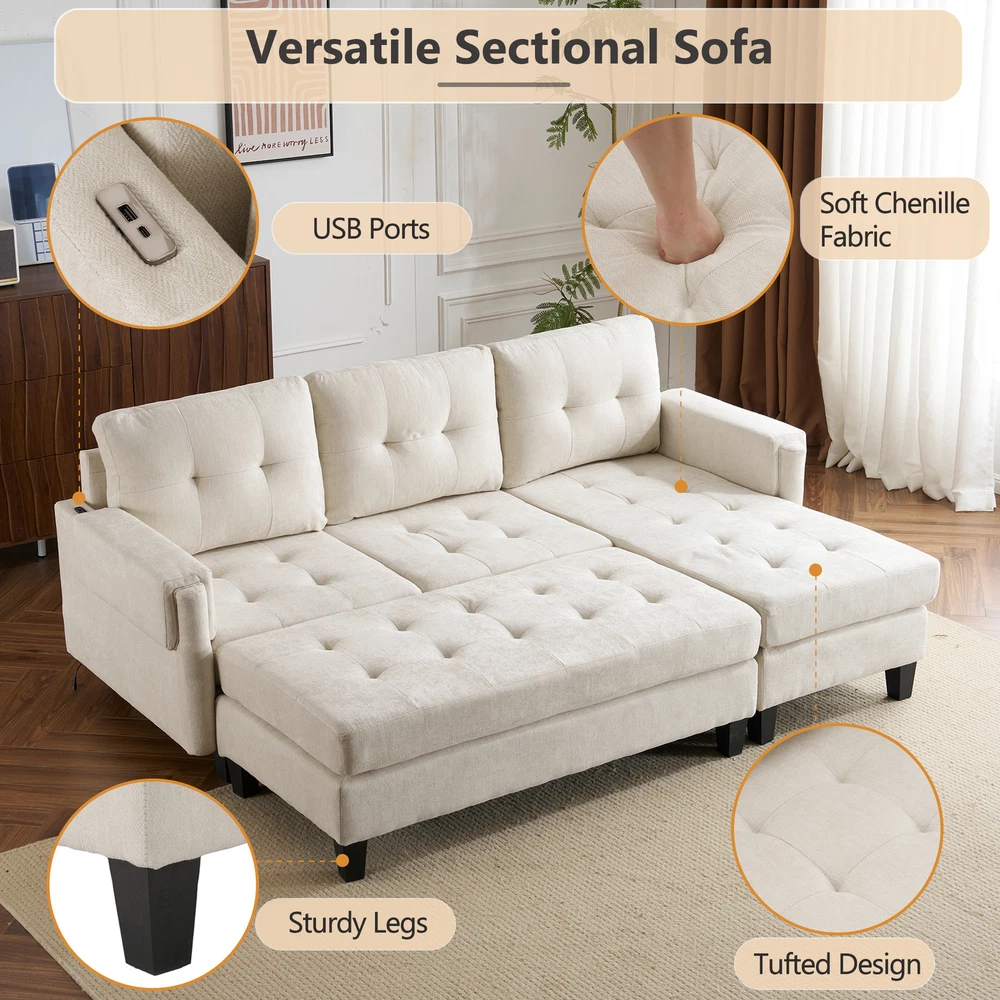 This L-shaped sectional is a game-changer! The reversible chaise lets you customize the layout, and the movable ottoman doubles as a sofa bed or coffee table—so handy for guests. Love the built-in USB ports for easy charging. Super comfy, stylish, and incredibly versatile—perfect for lounging, hosting, or even an extra sleeping spot. Highly recommend!