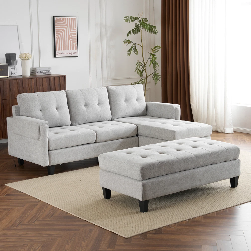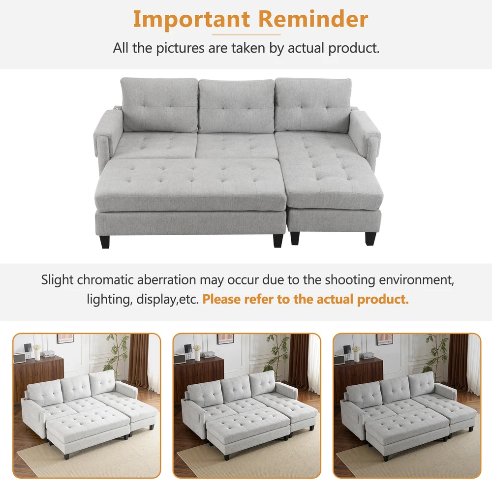 Reversible Chaise Lounge - The chaise lounge can be positioned on either the left or right side of the sofa to suit your needs and the shape of your room. You have the flexibility to create the arrangement and design you prefer. Versatile Ottoman - The sectional sofa features an L-shaped design with a movable ottoman. The ottoman can be attached to the sofa using connecting pieces to create a sofa bed for overnight guests. Additionally, it can serve as a coffee table, depending on your needs. USB Charging Design - Featuring two USB ports, this design allows you to easily charge or use your electronic devices without the worry of running out of power. Superior Construction - Supported by sturdy black solid legs, this sectional sofa provides exceptional ... 83.4" L-shaped Sofa Sectional Couch Sofa Bed with Two USB Ports, a Movable Ottoman and a Reversible Chaise Lounge for Living Room, Grey Reversible Chaise Lounge - The chaise lounge can be positioned on either the left or right side of the sofa to suit your needs and the shape of your room. You have the flexibility to create the arrangement and design you prefer. Versatile Ottoman - The sectional sofa features an L-shaped design with a movable ottoman. The ottoman can be attached to the sofa using connecting pieces to create a sofa bed for overnight guests. Additionally, it can serve as a coffee table, depending on your needs. USB Charging Design - Featuring two USB ports, this design allows you to easily charge or use your electronic devices without the worry of running out of power. Superior Construction - Supported by sturdy black solid legs, this sectional sofa provides exceptional stability and durability. The high-density cushions ensure maximum comfort for a truly enjoyable seating experience. Fashionable Design - The tufted stitching in the upholstery adds a touch of sophistication, enhancing its contemporary style. The waffle stitch pattern introduces subtle texture while maintaining optimal comfort. Item Specifics Brand Unbranded Type sofa Color Grey Upholstery Fabric Chenille Item Length 50.79 in Item Width 20.67 in Item Height 11.81 in About us Dear buyer, Thank you for visiting my store! Our warehouses are located in many regions around the United States. According to the customer's delivery address. Use USPS/UPS/DHL logistics transportation service. Prioritize the best quality logistics solutions to transport packages. Ensure package delivery time, At the same time. Have any after-sales problems, Feel free to contact us. At your service Payment PayPal is our preferred method of payments it's the quickest, easiest and most secure way to pay for your goods or services online. PayPal offers buyer and seller protection should there be a problem. If you do not have a PayPal account, to get started and buy your first item with us is very easy. Simply click on the 'Buy It Now' button and follow the eBay checkout steps. Select PayPal as the payment method you then will be given the chance to enter your card details in to PayPal's secure checkout in order to pay for your order. Shipping 1. Your purchase is shipped directly to you as soon as we have received your cleared payment. 2. Normally all of parcels would be shipped within 3days(From Monday to Saturday). 3. We will send information on eBay or email if the parcel was delayed due to our holiday. 4. We provide three kinds of shipping for choice. Shipping way depend on delivery address. Returns If an unit is received defective, of course we take it back or replace it. If the unit is received as expected, we must charge for our expenses if you want to send it back. We have to charge for the work of handling, retesting and restocking. DESCRIPTION PAYMENT SHIPPING RETURN POLICY CONTACT US Shop Category Store Home Other Hot Item 8 cu. ft. Dual-Wheel Wheelbarrow, Pro-Grade Poly Bucket, Steel Handles, Dual 16 USD 223.90 Flextreme 5/8 in. Dia x 50 ft. Black Performance Rubber Garden Hose USD 46.70 Co-op Cycles DRT 1.1 Mountain Bike USD 419.29 5.5 cu. ft. Heaped Poly Smart Plastic Garden Cart USD 70.98 6 cu. ft. Steel Tub Wheelbarrow with Wooden Handles and Pneumatic Tire USD 113.90 Delivery New List Item Amonia 5-piece Dining Set, Turned-Leg Dining Table with 4 Tufted Chairs USD 749.26 Dark Cherry 1pc Sofa Table Open Bottom Shelf Glass Insert Top Cocktail Table Liv USD 395.15 Rustic Style Antique White 1pc SOFA TABLE Open Bottom Shelf Plank Style Table To USD 358.70 Convertible Combination Sofa Sofa L-Shaped Sofa with Storage Cabinet Footstool, USD 380.92 Amonia 5-piece Dining Set, Turned-Leg Dining Table with 4 Tufted Chairs USD 749.26 Help & Info Payment Policy Shipping Policy Return Policy FAQ About Us 83.4" L-shaped Sofa Sectional Couch Sofa Bed with Two USB Ports, a Movable Ottoman and a Reversible Chaise Lounge for Living Room, Grey Reversible Chaise Lounge - The chaise lounge can be positioned on either the left or right side of the sofa to suit your needs and the shape of your room. You have the flexibility to create the arrangement and design you prefer. Versatile Ottoman - The sectional sofa features an L-shaped design with a movable ottoman. The ottoman can be attached to the sofa using connecting pieces to create a sofa bed for overnight guests. Additionally, it can serve as a coffee table, depending on your needs. USB Charging Design - Featuring two USB ports, this design allows you to easily charge or use your electronic devices without the worry of running out of power. Superior Construction - Supported by sturdy black solid legs, this sectional sofa provides exceptional stability and durability. The high-density cushions ensure maximum comfort for a truly enjoyable seating experience. Fashionable Design - The tufted stitching in the upholstery adds a touch of sophistication, enhancing its contemporary style. The waffle stitch pattern introduces subtle texture while maintaining optimal comfort. Item Specifics Brand : Unbranded Type : sofa Color : Grey Upholstery Fabric : C
