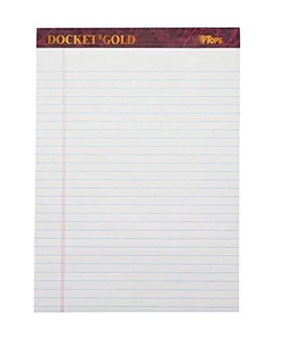 Docket Gold legal pads are a step up from your average legal pad. The thicker, higher-quality paper prevents ink bleed through and is smoother than standard paper. The backer is also twice as thick, making it less bendable and easier to write on when you're away from a desk or table. Docket Gold legal pads are made in America—manufactured in Covington, TN. You'll get 6 letter size legal pads, each with 50 sheets of white paper. Each sheet is perforated, so you can always remove it cleanly and start notes on the next page. These legal pads are wide ruled, also known as legal ruled (11/32" spacing between lines) so you can write a little larger. Each legal pad is 8.5 x 11.75 inches overall, and each sheet tears out to letter size (8.5 x 11 inches). The front of the page and the back of the page are the same. These Docket Gold writing pads are a professional choice for meeting notes, general notes, legal notes, and more. Stock up on a 6 pack of 8.5 x 11 legal pads; each white legal pad has 50 perforated, wide ruled sheets Docket Gold is a premium brand of legal pads; the chipboard back is thicker than your standard legal pad and the paper is a heavier weight to prevent write-though These legal pads are proudly made in the USA; all Docket Gold professional writing pads are manufactured in Tennessee The overall dimension of each pad is 8.5" x 11.75"; each perforated sheet tears off to letter size (8.5" x 11"); pages are wide rule for larger, more legible writing The premium paper and extra-sturdy backer is ideal for a professional environment; from legal notes to meeting notes, these Docket Gold legal pads are above the standard