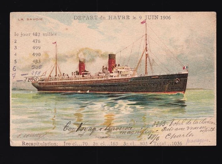 [85002] 1906 POSTCARD S. S. “La Savoie” Compagnie Générale Transatlantique, French Line ; NOT POSTALLY USED; IN GOOD CONDITION with slightly soft corners. PAYMENT to be received and collected within 24 hours OF END OF AUCTION. International Buyers – Please Note: Import duties, taxes and charges are not included in the item price or shipping charges. These charges are the buyer's responsibility. Please check with your country's customs office to determine what these additional costs will be prior to bidding/buying. These charges are normally collected by the delivering freight (shipping) company or when you pick the item up – do not confuse them for additional shipping charges. We do not mark merchandise values below value or mark items as "gifts" - US and International government regulations prohibit such behavior.