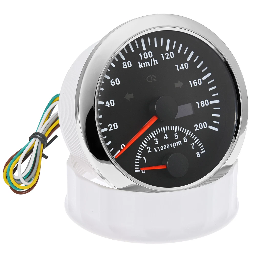 85MM GPS Speedometer 0-200 Km/H with Tachometer Gauge 8000RPM for Car Boat Truck 85MM GPS Speedometer 0-200Km/H with Tachometer Gauge 0-8000RPM for Car Boat Motorcycle Warmly tips: If any problem after buying, such as some when you install or the parcel received or un-received, please do not open a case and do not hesitate to contact us. We would do our best to give you the best solution. Thank you so much Features: - Suitable for all vehicles and off-road vehicles - The signal comes directly from the satellite signal receiver(GPS Antenna), don’t need other speed sensor. - The gauge has the advantages of high precision, quick location confirmation and short start up time. - IP67 waterproof and dustproof grade - Reverse polarity protection and anti-fogging performance - No Stationery Drift - Stepper motors used for full range of stepping gauges, great feature with its less power consumption, longer life, higher precision, etc. Technical Data: * Fixing dimension: 85mm(3-3/8") * Indicating Range: 0-200km/h,and 0-8000rpm * Working Voltage: 12V/24V * Total Mileage Adjustable, Mileage Range: 0-99999.9 km * GPS Blind Area Odometer Compensation * OverSpeed Buzzer Alarm (Value Adjustable) * Indication light: LEFT, HIGH BEAM, RIGHT * Backlight: Red * Working temperatures: - 40 to 85°C * Operation mode: LCD display, stepper motor Connection: 1. Black: Ground(-) 2. Red: 9-32VDC(+) 3. Blue: RPM Signal 4. Yellow: Backlight(+) 5. White: High Beam(+) 6. Brown: Buzzer alarm(+) 7. Green: Buzzer alarm(-) 8. Yellow: Left Turn 9. Gray: Right Turn 10. White: Ex. Button(no need connect)==(If need to connect, please connect negative) Package Included(as picture): 1x GPS speedometer with tachometer 1x GPS Antenna 1x Multi-plug socket 1x Installation Instruction Wholesale and Drop shipping - For wholesale, we will offer the discount or free express shipping which only takes 3-7 days to arrive. - For drop shipping, We could send the goods to your customers directly and won't leave information about us if youd like to.