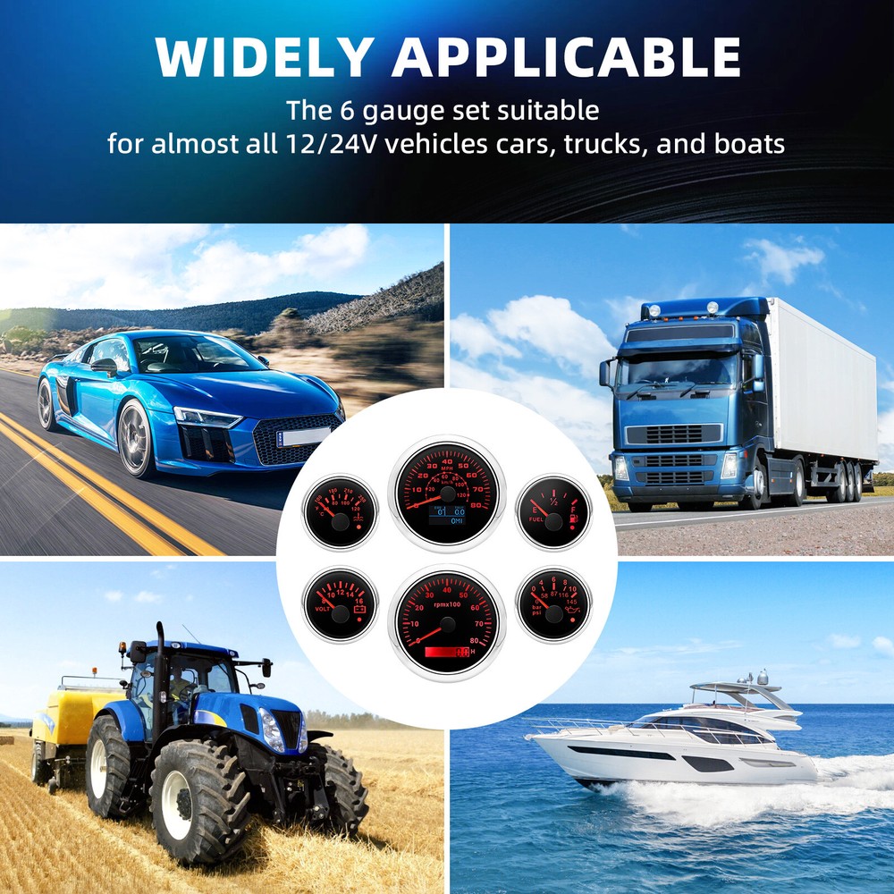 $ 15.885mm 6-Gauge Set with GPS Speedometer and Waterproof Tachometer for Car or Boat