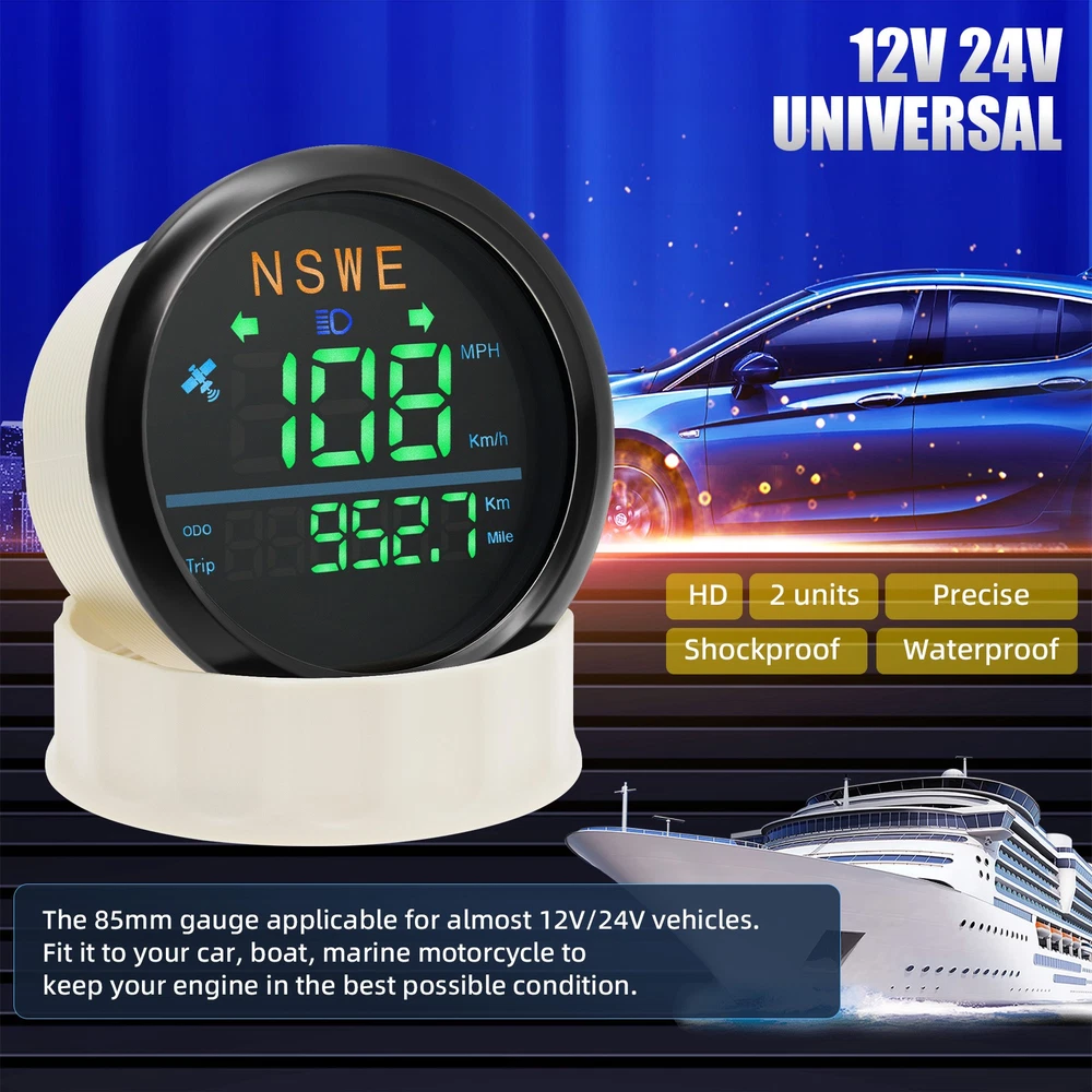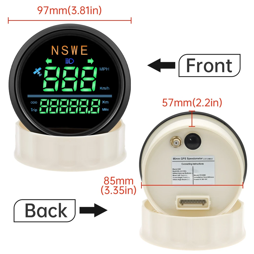 85MM Black GPS Speedometer 0-35MPH/0-55km/h Gauge for Motorcycles Boat Car ATV