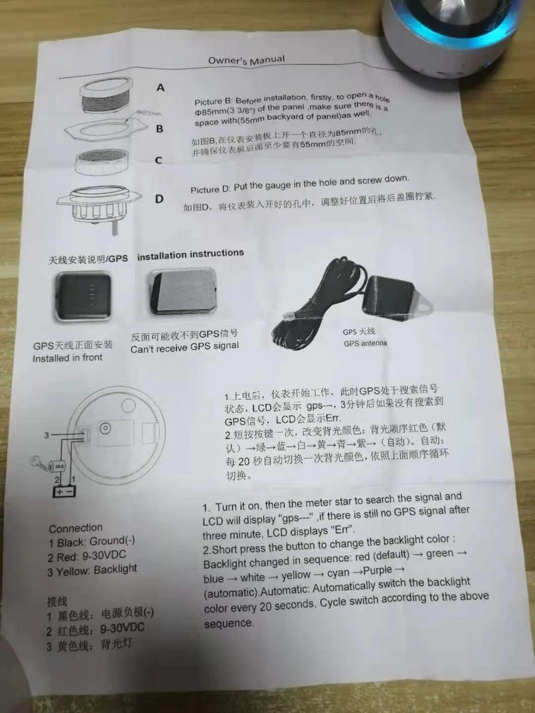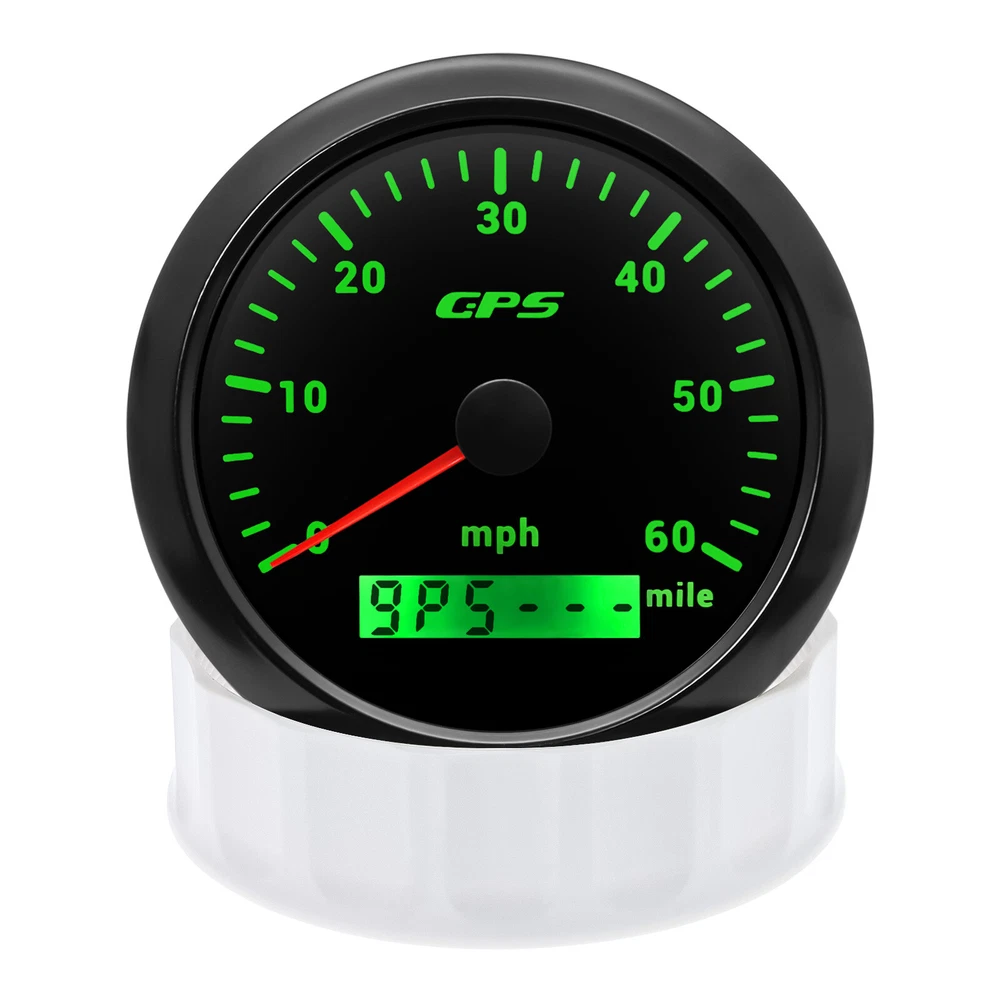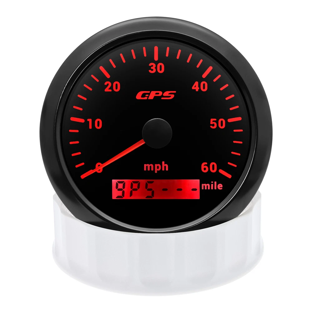 85mm Waterproof GPS Speedometer Gauge 0-60MPH Black For Motorcycles Boat Car US 85MM 7 Colors LED GPS Speedometer 0-60MPH Gauge for Marine Boat Car Truck Feature: IP67 waterproof and dust-proof grade. With curved glass( with anti-fog function). Suitable for all kinds of vehicle modification. 316 stainless steel for long-term use even in acid-base, humid environment. Using stepper motor drive pointer,accurate display of the engine speed, and with the LCD display clear display mileage. Gauges have many kinds backlight color( red,yellow,orange,green,blue,purple, white ),customers can adjust any color that you like Specification: Material:Stainless Steel 316L Bezel+Anti-fog Glass Install Diameter:Φ85mm or 3-3/8" Signal:GPS Working Voltage:9~32V DC Working Current: ≤100mA Operating Temperature: -30℃ ~ 75℃ Storage Temperature: -40℃ ~ 85℃ P67 waterproof and dustproof grade Indication Range: 0-60MPH Backlight:7 Colors Backligt Connection: Black: Ground(-) Red: 9-32VDC(+) Yellow: Backlight(+) Package Included: (as the picture shows) 1 X 85MM Digital GPS Speedometer Gauge 1 X Instruction 1 X Wire Harness 1 X GPS Antenna