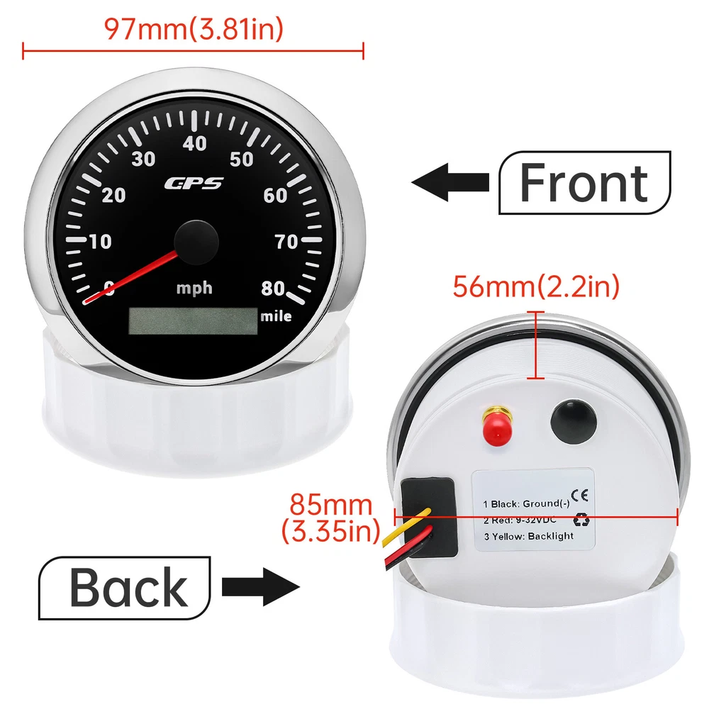 6 Gauge Set 85mm GPS Speedometer 80MPH Tachometer 8000RPM Gauge Waterproof US 6 Gauge Set 85mm GPS Speedometer 80MPH Tachometer 8000RPM Gauge Waterproof US Feature: High-brightness LED backlight. 316 stainless steel for long-term use even in acid-base, humid environment. IP67 waterproof and dust-proof grade. With curved glass( with anti-fog function). Suitable for all kinds of vehicle modification. Using stepper motor drive pointer, accurate display of the engine speed, and with the LCD display clear display mileage. Gauges have many kinds backlight color (red,yellow,orange,green,blue,purple,white),customers can adjust any color that you like GPS Speedometer Gauge Install Diameter:Φ85mm or 3-3/8" Signal:GPS Working Voltage:9~32V DC Size:12x8x12cm/4.72x3.1x4.75 inch Indication Range:0-80MPH Backlight:7 Colors Backlight Tachometer Install Diameter: Φ85mm or 3-3/8" Engine hours: 0.0-99999.9H Backlight :7 Color backlight Indicating Range: 0~8000 RPM Signal: Pulse For Tachometer, you can substitute for different unit, please contact us before / after purchase or note on the order. Tachometer: 0-3000rpm/0-4000RPM/6000RPM/7000RPM Fuel Level Gauge Sizes:52 mm (2-1/16") Measuring Range:Empty-Full Resistance:240 (E)-33 (F) ohms Backlight:7 Colors Water Temperature Gauge Install diameter: Φ52mm Indication range: 0~120℃/30-250℉ Input signal: 287.4~22.4 ohm Storage temperature: -40~+85℃ Backlight: 7 Colors Oil Pressure Gauge Install diameter:Φ52mm or 2-1/16" Indication range:0~10bar / 0-150 PSI Operating temperature:-30~+75℃ Storage temperature:-40~+85℃ Backlight: 7 Colors Volt Gauge Sizes: 52 mm (2-1/16") Measuring Range:8-16 (V) Backlight: 7 Colors Package Includes: 1X 85MM Digital GPS Speedometer Gauge 1X GPS Antenna 1X 85MM Tachometer 1X 52MM Fuel level gauge 1X 52MM Voltmeter 1X 52MM Water temp gauge 1X 52MM Oil Pressure gauge 6X Installation Instruction Payment Delivery details Terms of sales About us Contact us Payment Payoneer is accepted due to payment security and customer convenience concern. To accelerate the shipping process, please clear your payment ASAP after auction closure or placing the order. Delivery details 1. Orders will be processed and dispatched within the handling time after payment is clear, normally it will be handled within 1-2 days. 2. We only ship to confirmed eBay address while you paid. 3. If you have not received your shipment within estimated delivery date from payment, please contact us and we will offer a solution. Please do not worry about the estimated delivery time. Since eBay expands the delivery time to protect the buyer's right. The exact delivery time will take 9-12days, 15-18days. Hope it is OK for you Terms of sales 1. Please contact us within 30 days t from the date you receive your order if you have any issues with the product 2. All returned items MUST BE in the original packaging and you MUST PROVIDE us with the shipping tracking number 3. We will refund YOUR FULL WINNING BID AMOUNT, upon receipt of the item in its original condition and packaging with all components and accessories included. International Customers Please check with your country customs office to determine what these additional costs will be prior to bidding / buying. Import duties,taxes and charges are not included in the item price or shipping charges. These charges are the buyer responsibility About us We are full-time sellers on eBay. We are committed to product quality and customer service. we have sold gauges or sending units on the market over 10 years and welcome any retailed or wholesales business here. Contact us 1.If you have any question or concern, please do not hesitate to contact our customer support team. 2.E-mails are answered Monday through Saturday. Please allow up to 24hours for a response to your message