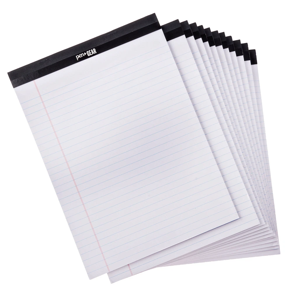 Legal Pad, White, 8.5 x 11.75", 50 Sheets, Pack of 12: 12 legal pads 8.5 in x 11.75 in White 50 sheets per pad, 600 sheets total Keep all your notes, ideas, doodles and records in one place Great for school, home and office use Wide Ruled Microperforated Take care of all your writing needs with this 12 pack of legal pads. These white, lined, wide ruled legal pads are classic stationery items which can be used by people in any profession or for amateur hobbyists. From authors, legal assistants, doctors, and teachers to college students and hobbyists, these legal pads are sure to provide you with the dependable service you expect. The microperforated design of the 50-sheet pads enable you to fold finished pieces of paper over the top, keeping the pad as a whole or to remove each sheet easily at your leisure. Keep all your notes, ideas, doodles and records in one.