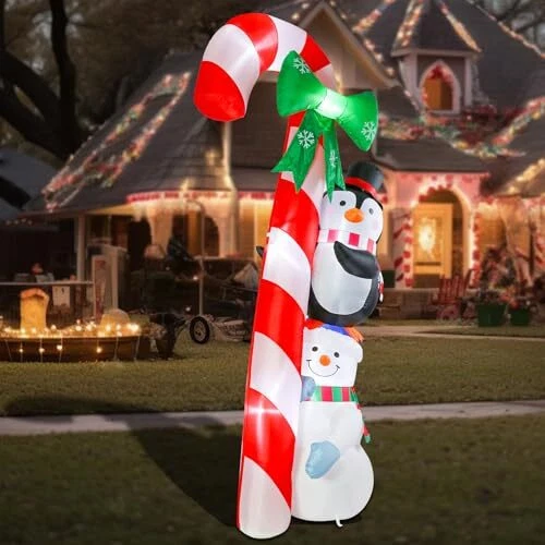30 Days Return Policy Fast Delivery Trusted seller 8.6 FT Christmas Inflatable Decorations Candy Canes, Large Candy Canes,Snowman and Penguins Built-in Bright LED Light Blow Up for Yard, Garden,Lawn Outdoor Holiday Yard Decorations Product Description 【Lovely Inflatable Candy Cane 】 - 8.6 feet tall inflatable Christmas Candy Cane with snowman and penguins has built-in bright LED lamp beads; It's perfect for Christmas indoor/ outdoor home yard garden art decorations 【High Quality Material】 - Made of high-quality 210T Polyester which is durable and fade resistant. This inflatable decor is providing with a powerful-duty blower to continuous airflow inflate the decoration 【Sandbags & Ground Stakes Support】 - T have sandbags are secured at the bottom. T are ground stakes and ropes in each inflatable decoation, and t are small hooks on both sides of the inflatable decoation to secure the nails, so you can put them in anyw 【Safe & Easy to use】 - You just need to connect the plug, this inflatable decoation could blow up in seconds. And you won't need to unplug it during use. Our plugs are UL-certified safety plugs 【Christmas Decoration】 - This inflatable decoration is perfect for home decoration such as garden ,yard or party etc.Please contact us with any questions! We offer free refund and replacement Shipping Returns Payment Shipping Shipping is FREE to all addresses other than APO/PO boxes in the lower 48 states. All our stock ships from US-based warehouses. Shipped via USPS or UPS (depending on location and package weight) Unless stated otherwise, all orders will ship within 24-72 hours of your payment being processed. Check our feedback to see the great reviews of FAST shipping we offer. Returns As our valued customer, we will do our best to make sure the product you receive arrives to you on time and as expected. If you are not satisfied with your purchase, please contact us within 30 days of receiving your order to process a return. Payment We currently accept payment via eBay managed payments only. Once payment is cleared, we will dispatch your shipment within 1-3 business days. Please refer to the "Shipping" tab for more information regarding shipping speed to your destination.
