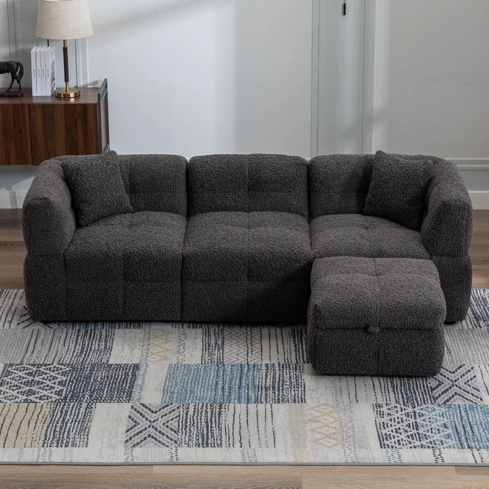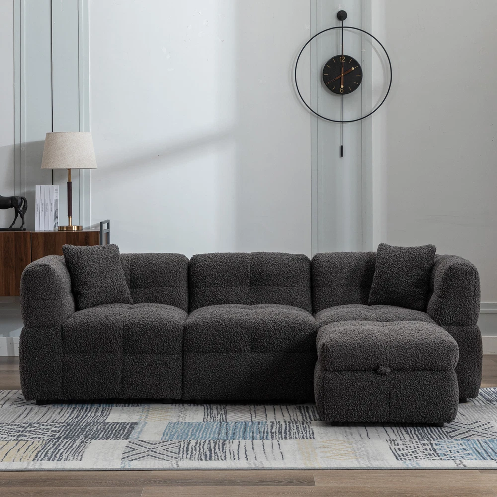 This sectional sofa is a dream for cozy nights! The ultra-soft teddy fleece fabric makes it so comfortable, and the multi-functional ottoman is a game-changer—use it as a footrest, extra seating, or hidden storage. Love the built-in USB ports for keeping devices charged while lounging. Perfect for small spaces or movie nights, and the storage keeps everything tidy. So stylish and practical!