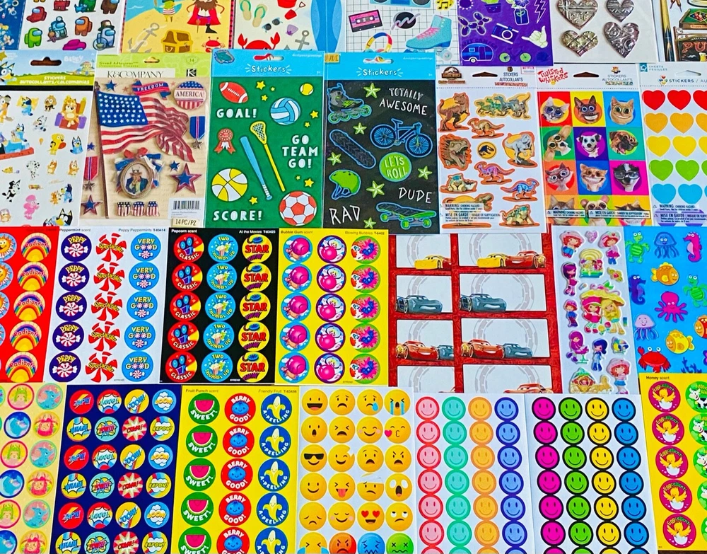 HUGE Mixed Sticker Lot | The Ultimate Kit | Qty. 899+ Stickers | High Quality Only! Fun Assortment of Puffy, Scrapbook, Cartoons, Bubble, Pop Up Stickers Packs For Everyone! You will receive 39+ Sticker Sheets of beautiful colorful assortment. The Pack will include 899+ Stickers overall! I have included a large variety of pictures of the assortment available. The pictures give you an idea of what you will be receiving. Please Note: You will not receive everything pictured. Please contact me with any special requests. This HUGE Variety of fun designs stickers can be used in parties, classroom, school and home, good for reward for students, potty training, adding inside a birthday card, game activities, entertaining toddlers, etc. Perfect Gifts for Kids & all Occasions: Can be given as a gift for kids, girls, boys, toddlers, teens, students, friends, and classmates, they will love it!