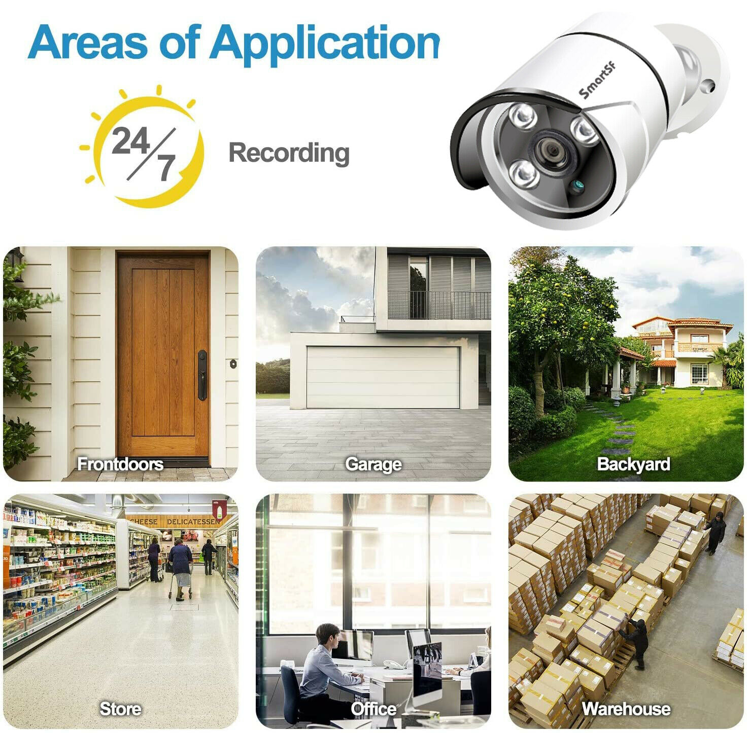 SmartSF 8 Channel 5-Megapixels 2560*1920P Outdoor PoE IP Security Camera System Features: 【Super HD 5-Megapixel High Resolution】 5.0MP IPG5520-F with a pixel resolution of 2560x1920, that is, nearly 2.4X the resolution of 1080p Full HD, and even 1.3X the resolution of 1440p. It sees and records your home security more clearly, with more details. 【Excellent Night Vision, Up to 100ft】 Great cameras aren't just measured by images in daytime. SmartSF 5.0MP security camera kit stands out for its incredibly excellent images at night. Infrared LEDs enable long night vision distance (up to 100ft). Captures crystal clear video evidence of theft and vandalism that occur in low-light conditions. Reliable Solution for Home, Business and Projects. 【Waterproof Works Perfectly Outdoor/Indoor】 The 4 Bullet cameras 5.0MP IPG5520-F have solid aluminum bodies and housing, with an IP66 waterproof rating. So you can feel free to install them outdoors, like in your garage, backyard, or anywhere else. It can stand harsh weather conditions, including rain, snow, intense cold and heat. Rain or shine, hot or cold, these cameras never quit. 【PoE–Easy Setup, Eve n for a Beginner 】 A real plug and play security system! It features PoE (Power over Ethernet), with a single network cable connecting each IP camera to the NVR for both power supply and video signal transmission. Easy wiring – the wiring process can’t be simpler for DIY enthusiasts and beginners. 【Remote Viewing, Anytime, from Anywhere】 No matter where you are, you can remotely access the security camera to see live streaming and stay connected. Remotely view the IP camera via free “IP Pro” App on your mobile device, free “E-see Net” CMS Client on your computer, web browser. Even when you are in your office or travelling, you can check what's happening to your home/business on the go. PoE Network Video Recorder Specifications: IP Video Input: supports 4 IP cameras Video Output: Monitor or HDTV via VGA, HDMI Compression Format: H265+, H.265 and H.264 Playback: 4 cameras play simultaneously HDD: Not included HDD Capacity: 1x internal SATA port, up to 6TB Power over Ethernet Sockets: RJ45 x 4 USB Port: 2x USB 2.0 (mouse control, backup, firmware upgrade) Remote Access: iPhone, Android Phone, Windows PC PoE IP Camera Specifications: Image Sensor: 1/2.8" CMOS Sensor Effective Pixels: 2560 x 1920 (5.0 Megapixels) Frame Rate: Main Stream@25fps, Sub Stream@6fps Day & Night Vision: Auto / Color / BW Output Interface: RJ45 Operating temperature: Up to +60℃ What’s In Box: 1x 8CH 5MP NVR 1x 4pcs 5MP cameras 1x USB mouse 1x DC 48V3A power supply for NVR 4x 18m network video cable for IPC 4x Screw kit for IPC installation 1x User manual