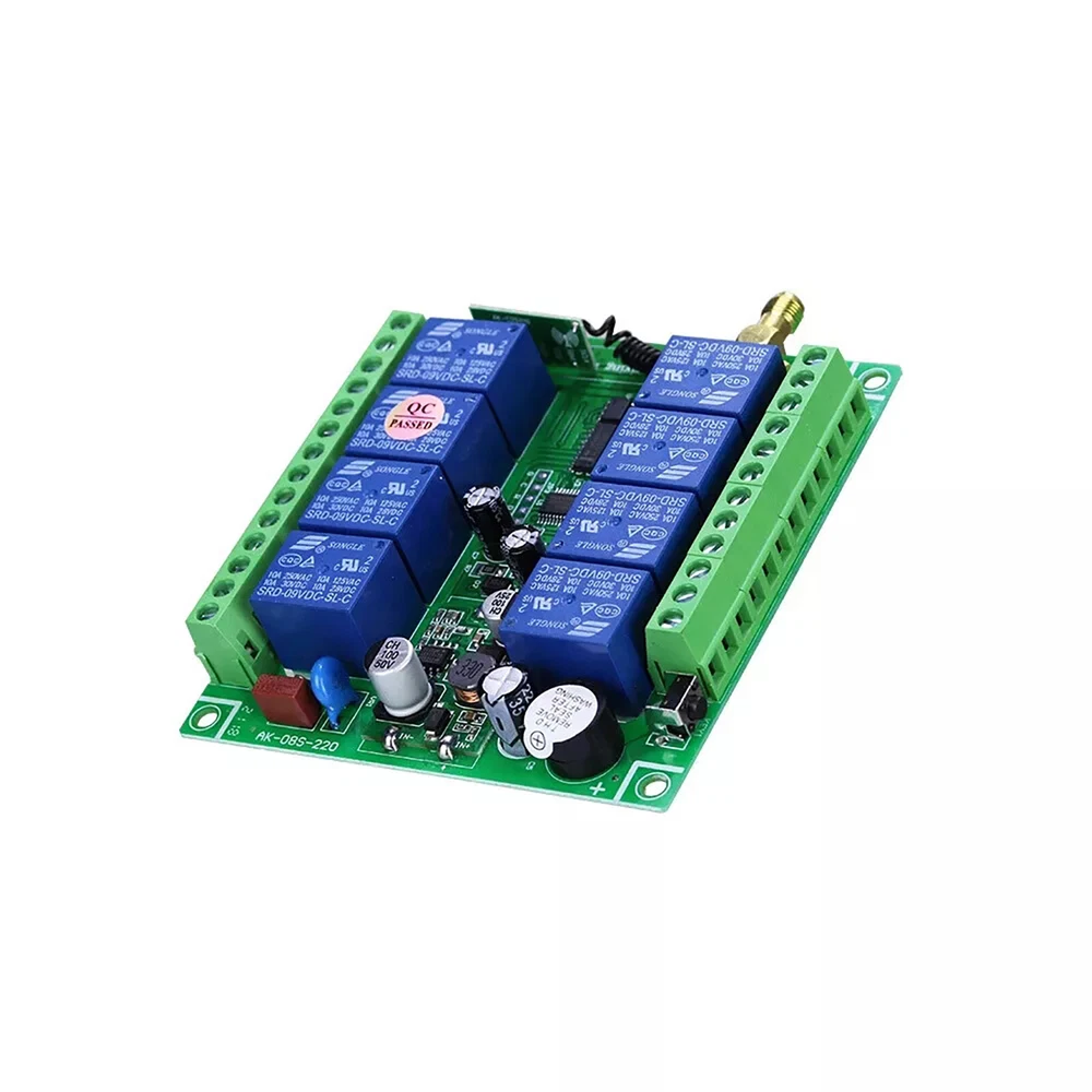 Product Description 8-Channel 868MHz Quality AC Wireless RF Remote Control Relay Module Switch Features: Wireless Remote Switch, Remote Control Switch Multifunctional 8ch Intelligent Control For Industry. This Kind Of AC100-240V Wide Voltage Two-Way Remote Control Switch, Switch Power Supply, A Professional Switching Power Supply Management Chip, Power Supply Voltage Stability, A Complete Solution Resistance Capacity Step-Down And Make The Power Supply Voltage Is Not Stable, Lead To The Entire Switch Unstable Phenomenon. The Remote Control Switch Adopts 10 A Relay, Can Load A High-Power Electrical Appliances, Learning Microcontroller Decoding, Can Learn More Remote Control, Simple Operation Supporting Flexible; Toggle Switch Is Adopted To Improve The Switch Output Work Way, Dynamic, Self-Locking, Interlocking (Point) Can Be Arbitrary Choice Easy To Use, Another New Way Of Manual Work. Apply To Multiple Areas A Variety Of Purposes; Reserved For The Output Data Bits Welding Plate, Can Receive Through Short Different Solder Joint Location Choice Of The Remote Control Buttons, Convenient Customer Supporting Various Remote Control That Oneself Like, To Avoid The Old Fixed Single Design Keys You Can Match The Embarrassment Of The Remote Control. Mainly Used In Garage Door Control, Lighting Control, Electric Door, Remote Control Curtains, Lifting Equipment, Motor Control, Water Pump, Projection Screen Elevator Control And Security Industry And Other Fields, Is Easy To Install, Use The Advantages Of Simple And Safe And Reliable. Mainly Used In Electric Door, Window, Lifting Equipment, Gateway, Elevator, Industrial Control And Security Industry Etc. Specifications: Working Voltage: AC100 -- 240V Working Temperature: -40℃ - +80℃ The Receiving Sensitivity: -105dbm Working Frequency: 868mhz Size: Circuit Board: 86.95*92.6*16.4mm With Shell: 90.2*115*40mm Remote Control Battery: 2* AA Batteries(Not Included) Remote Control Transmission Distance: >200 Meters Mediation Method: FSK Matching Methods: Learning Pairing: Press The Receiver Learning Button - The Buzzer Sounds, Indicating That You Have Entered The Learning State. Press Any Key On The Remote Control - The Buzzer Stops Ringing, Indicating That You Have Successfully Learned. Mode Switching: ① Signal Jog - Press The First Button On The Remote Control To Learn. ② Signal Interlock - Press The Second Button On The Remote Control To Learn. ③ Signal Self-Locking - Press The Third Button On The Remote Control To Learn. ④ 1-4 Way Jog, 5-8 Way Self-Locking - Press The 4th Button On The Remote Control To Learn ⑤ 1-4 Way Jog, 5-8 Way Interlock - Press The 5th Button On The Remote Control To Learn ⑥ 1-4 Interlocking, 5-8 Self-Locking. Press The 6th Button On The Remote Control To Learn ⑦ 1-4 Way Interlock, 5-8 Way Jog - Press The 7th Button On The Remote Control To Learn ⑧ 1-4 Self-Locking, 5-8 Inching - Press The 8th Button On The Remote Control To Learn Code Clearing Method: Long Press The Receiver Learning Button Until The Buzzer Stops Ringing, Indicating That The Stored Information Has Been Successfully Cleared. Packege Included: 1 X Receiver 1 X Remote Control If you have any questions, please feel free to contact us via ebay. We usually respond within 24 hours. Payment Shipping Returns Contact Us We accept all verified payments from ebay. Orders will be shipped after receiving cleared payment. Payment due within 7 days after auction ends and for buy it now listings. We ship most of our orders within 24 hours, and may up to 48 hours for. If you want faster shipping way. Please contact us before making payment. Sometimes due to problems with our transportation company system, your shipping information may be delayed to update. We recommend that you try again after 3-4 days. If you still haven't checked the shipping information, you can contact us by ebay message. Always believe we can figure things out with communication, if it comes to return, the pacakge must be intact and the same as you receive. If you have any questions, please feel free to email our service specialists 24 Hours a Day, 7 Days a Week. We will reply you ASAP. Return/refund is accepted within 30 days after the buyer receives the item. NO exchange will be accepted after 30 days from the date when the item is received. Please contact us first before returning your product!!! If you have any questions, our Customer Service staffs welcome you to email us. We strive to answer all questions and resolve any problems as quickly as possible. You can contact us 7*24, we will reply at the first time, and we will surely solve your problems. Note: 1.We try our best to reply to your emails as soon as possible, however, due to high volume of daily incoming emails and time zone difference, we may not be able to reply your emails immediately. Please allow 1 business days for us to response. If you do not receive any reply from us, please check your email ensuring your mailbox has not reached full size. 2.Due to some ISP SPAM filter settings, you may not be able to receive our replies; if you have problems receiving our emails, you may need to use a different email account to contact us. 3.Please give us the opportunity to resolve any problem. We understand the concerns and frustrations you might have, and will try our best to resolve the issues. Please email us before leaving any negative feedback or open any dispute on PayPal. 4.We care about our valued customers, and will always try to help you. So if you have any problems, please e-mail us immediately. Payment We accept all verified payments from ebay. Orders will be shipped after receiving cleared payment. Payment due within 7 days after auction ends and for buy it now listings. Shipping We ship most of our orders within 24 hours, and may up to 48 hours for. If you want faster shipping way. Please contact us before making payment. Sometimes due to problems with our transportation company system, your shipping information may be