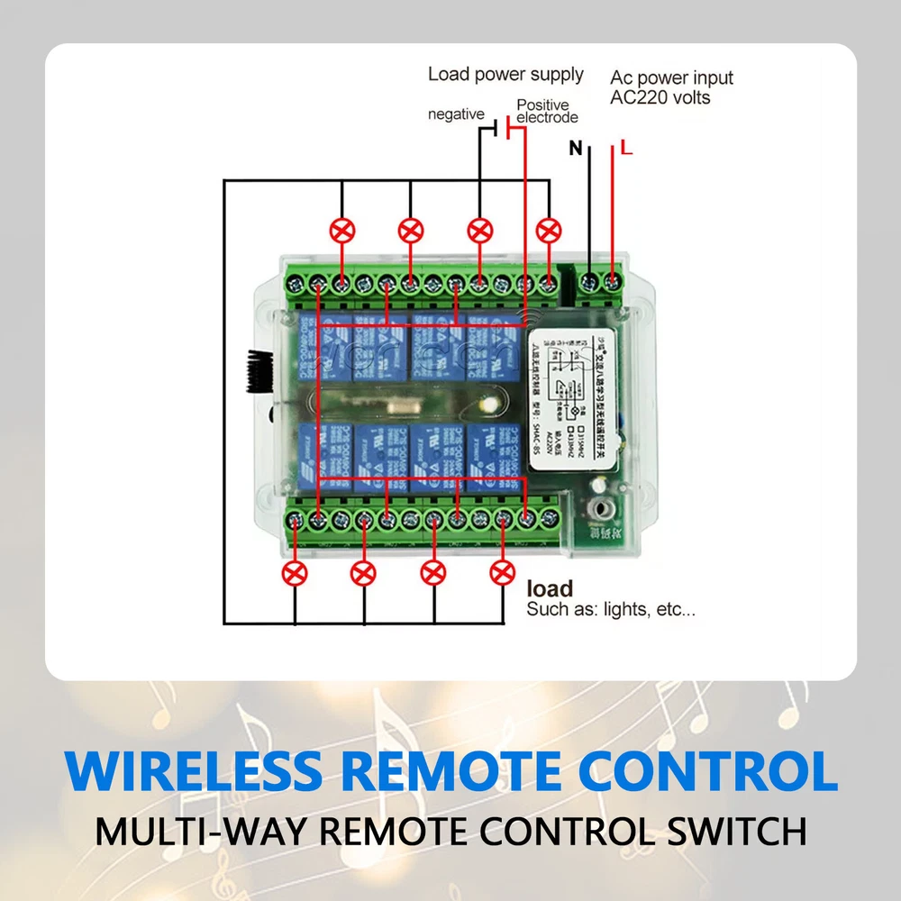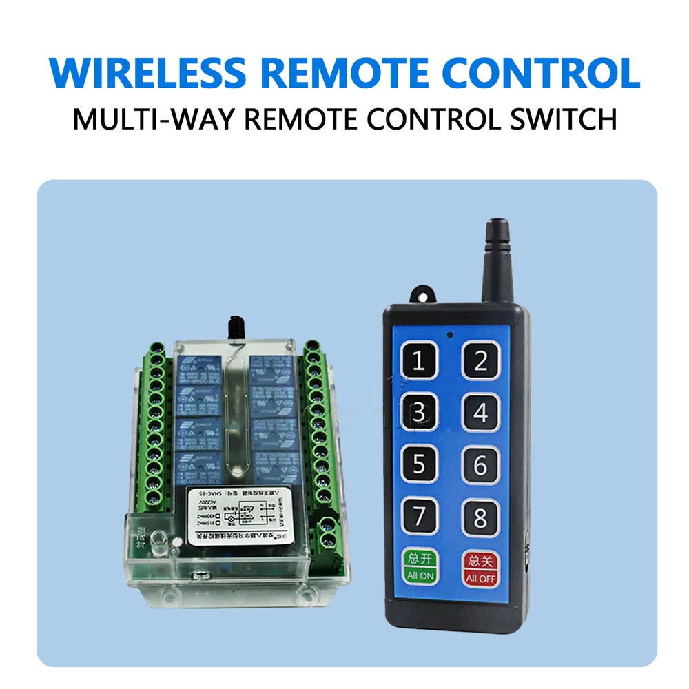 Description Features: 1. Compact product, with working indicator light 2. Simple operation, wiring without disassembling the shell direct wiring 3. Wide voltage power supply, safe and reliable, stable performance, low power consumption 4. Loss of remote control, can clear the information stored in the acceptance of the controller 5. Wide range of use: applied to electric doors, windows, lifting equipment, gates, elevators and other fields Product Parameter: Working voltage: DC8-86V Load power: 1000W Operating Temperature: -10℃-+70 Static current: 8mA Coding mode: learning type Controller size: 120mm* 90mm* 35mm Mode 6: Tap + total open (with 10-key remote control) Mode 7: self-locking + total opening and closing (with 10-key remote control) Working Mode Mode 1: Tap Mode 2: Self-locking Mode 3: Interlock Mode 4: 1. 2. 3. 4-way tap 5. 6. 7. 8 self-locking Mode 5: 1. 2-way tap, 3. 4-way self-locking, 5. 6-way interlocking, 7.8-way interlocking Explanation of mode output Self-locking: Press the same remote control button, press it once, the relay will absorb, press it again, the relay will turn off. Interlocking: Press the remote control 1 key, one - way relay will be engaged (the other way will be closed), press the remote control 2 key, two - way relay will be engaged (the other way will be closed). Tap: Press the remote control "1" key, the relay will absorb, release the remote control "1" key, the relay will turn off. If you keep pressing the remote control "1" key, the relay is always active, when to let go of the remote control, when the relay is off. +: Connect to the positive terminal of the power supply -: connect to the negative pole of power supply NC: Normally closed terminal COM: common terminal NO: Normally open terminal Learning code 1. Mode 1 (pointing) learning method: press the control panel code button once, wait for the LED indicator to light up and then press any key of the remote control that needs to be coded, and the LED indicator of the control panel will blink 3 times in a row for the code to be successfully coded. 2. Mode 2 (self-locking) learning method: continuously press the control board 2 times to the code button, wait for the LED indicator is lit, press any key of the remote control that needs to be coded, the control board LED indicator blinks 3 times in a row to the code successfully. 3. Mode 3 (interlock) learning method: continuously press the control board 3 times to the code button, wait for the LED indicator is lit, press any key of the remote control that needs to be coded, the control board LED indicator blinks 3 times in a row to the code successfully. 4. Mode 4 (point + self-locking) learning method: continuously press the control board 4 times the code button, wait for the LED indicator light up and then press any key of the remote control need to code, the control board LED indicator flashes 3 times to code successfully. 5. Mode 5 (Tap + self-locking + interlocking) learning method: continuously press the control board 5 times the code button, wait for the LED indicator light up and then press any key of the remote control that needs to be coded, the control board LED indicator flashes 3 times in a row to the code successfully. 6.Mode 6 (Tap+Total) Learning method: Press the control panel code button 11 times in a row, wait for the LED indicator to light up and then press any key of the remote control that needs to be coded, the LED indicator of the control panel will flash 3 times in a row and the code will be successfully coded. 7.Mode 7 (self-locking + total open and total close) learning method: continuously press the control board 12 times to code button, and so on the LED indicator light, light, press any key of the remote control that needs to code, the control board LED indicator blinks 3 times in a row to code successfully. Clear data Press the learning button on the control board for 11 consecutive times, it will automatically clear all the remote controls that have learned the code. After clearing, the The original remote control will no longer be controlled. Delivery list: Package 1: Relay Module*1 Package 2: Remote control *1 Friendly Tips: 1.Due to the light and screen difference, the item's color maybe slightly different from the pictures. Please understand. 2.Please allow 1-2cm differences because of the manual measurement. Payment 1. We only accept payment through Payoneer. 2. Please make sure you have a valid account prior bidding. 3. Please pay for your item within 7 days after you order. Shipping 1. Buyer take responsibility in import / tax cost (not included in item price) 2. Pls contact with us to confirm extra cost if you need to upgrade the shipping option 3. If there's any concern about shipping, pls contact with us for further confirmation Return Policy 1. Refund or Replacement request is available within 30 days after parcel received and returning the item as the same condition as received. Please contact us to request a return authorization. Your name, auction number, and reason for return should be included in the message. 2. All items returned must contain all original packaging materials. Please repack the item carefully. Items returned will be tested and a new replacement will be shipping to buyer punctually. 3. In the event that a suitable replacement is not available then a refund will be issued. Shipping, handling and insurance fees are non-refundable. 4.If the item was found non-defective, the item will be sent back to buyer at buyer's expense. Items returned without authorization will be refused and returned to sender/buyer. 5. Buyer pay the shipping cost if the item damaged artificially, or buyer say "not like it", "size/color was different per they imaginary", etc. Contact us Please contact us via ebay message any time, all questions will be replied within 12 working hours. Customer Support Online : 9:00am - 22:00pm (GMT +8) Everyday
