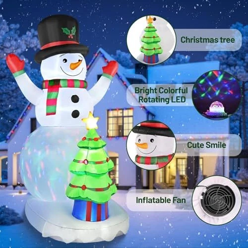 30 Days Return Policy Fast Delivery Trusted seller 8FT Christmas Inflatables Snowman Outdoor Decorations with Christmas Tree Built-in Colorful Rotating LED Lights Christmas Blow Ups Decorations for Yard Garden Lawn Xmas Holiday Decor Product Description Christmas Inflatables Snowman and Christmas Tree: 8FT Tall Snowman inflatable wears a hat and opens its hands as if it is embracing you warmly, Christmas tree inflatable is set up in front of the round belly,Smiling and waving hands, such an eye-catching christmas inflatable outdoor decoration in your front door. Bright Colorful Rotating LED Lights: Snowman outdoor Christmas decorations feature super bright colorful LED lights,It is very suitable for displaying at night.The dazzling lights will attract neighbors and guests to stop and take photos and interact,illuminating your lawn or garden,createing a happy and joyful Christmas atmosp Easy Self Inflating in Seconds: Just zip up the bottom zipper and plug into the power, you will get a giant snowman blow up christmas decorations within few minutes.The inflatable can quickly deflates and can be easily stored in a small space,which makes it an ideal outside christmas decorations for a Christmas party decoration Safe and Secure: No need to worry that your christmas inflatables outdoor will fly away with the wind,the solid foundation design is very stable,also equipped with 4 Fasten Ropes, 8 Ground Stakes that strenthen the stability.The inflatable snowman is made of waterproof and wrinkle resistant polyester,The reinforced seams provide extra durability, ensuring that this Christmas decorations inflatable outdoor will last through many holiday seasons. Best Christmas Decorations Outdoor Kit: This Christmas inflatable is one of the ideal Christmas Decorations for hosting a Christmas event, our winter Christmas outdoor yard decorations are about to create a happy and joyful atmosp for you to enjoy a great time with families and friends Shipping Returns Payment Shipping Shipping is FREE to all addresses other than APO/PO boxes in the lower 48 states. All our stock ships from US-based warehouses. Shipped via USPS or UPS (depending on location and package weight) Unless stated otherwise, all orders will ship within 24-72 hours of your payment being processed. Check our feedback to see the great reviews of FAST shipping we offer. Returns As our valued customer, we will do our best to make sure the product you receive arrives to you on time and as expected. If you are not satisfied with your purchase, please contact us within 30 days of receiving your order to process a return. Payment We currently accept payment via eBay managed payments only. Once payment is cleared, we will dispatch your shipment within 1-3 business days. Please refer to the "Shipping" tab for more information regarding shipping speed to your destination.