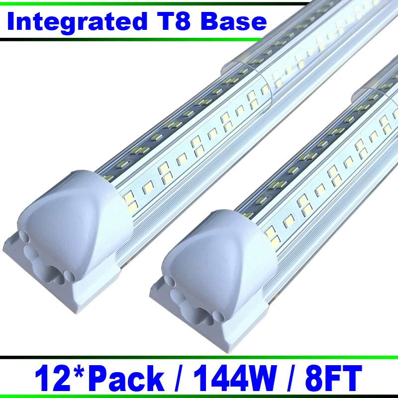 FAST DELIVERY - Ship from New Jersey or Los Angeles Warehouse via FedEx , 3-7 Days Delivered Your Door . SCIENTIFIC DESIGN - 8Ft LED Shop Lights Fixture is Made of 6500K Cold White SMD2835 LED Chip ,Plastic Clear Cover , Aluminum Bracket Housing ,and AC85-277V Constant Current Driver . It can work in -68F to 120F Temperature Conditions EASY INSTALLATION - The Integrated Tube Fixture Can be Install on Wall or Ceiling ,Easily Replace Traditional Fluorescent Tube Bulb . Plug and Play , Free Accessories (Power Cords, Connector , Extension Cords , Clip and Screw ) Come with Tube Lights Together WIDE APPLICATION - Linkable 8Ft Bulbs Widely Used in Garage Ceiling , Barbershop , Schools, Hospitals Basement , Factory Warehouses , Supermarkets Cooler Door , Offices, Shops,Hotels, etc 8Ft LED Shop Light 144W 4 Row 96 Inch Cooler Door Freezer LED Tube Fixture 12/Pc FAST DELIVERY - Ship from New Jersey or Los Angeles Warehouse via FedEx , 3-7 Days Delivered Your Door . SCIENTIFIC DESIGN - 8Ft LED Shop Lights Fixture is Made of 6500K Cold White SMD2835 LED Chip ,Plastic Clear Cover , Aluminum Bracket Housing ,and AC85-277V Constant Current Driver . It can work in -68F to 120F Temperature Conditions EASY INSTALLATION - The Integrated Tube Fixture Can be Install on Wall or Ceiling ,Easily Replace Traditional Fluorescent Tube Bulb . Plug and Play , Free Accessories (Power Cords, Connector , Extension Cords , Clip and Screw ) Come with Tube Lights Together WIDE APPLICATION - Linkable 8Ft Bulbs Widely Used in Garage Ceiling , Barbershop , Schools, Hospitals Basement , Factory Warehouses , Supermarkets Cooler Door , Offices, Shops,Hotels, etc