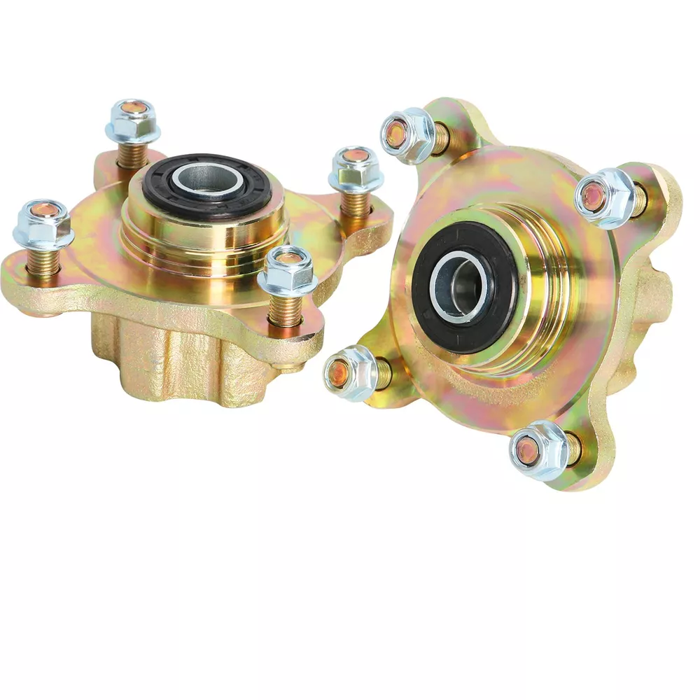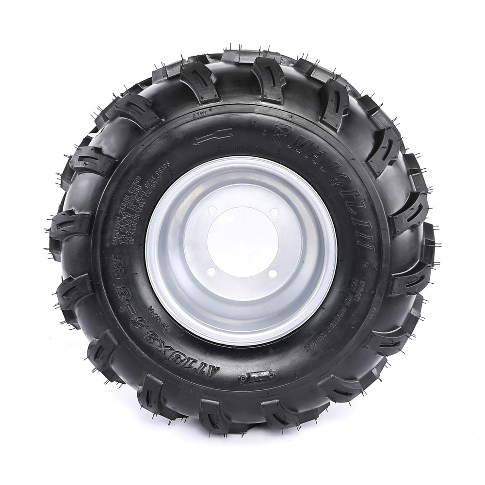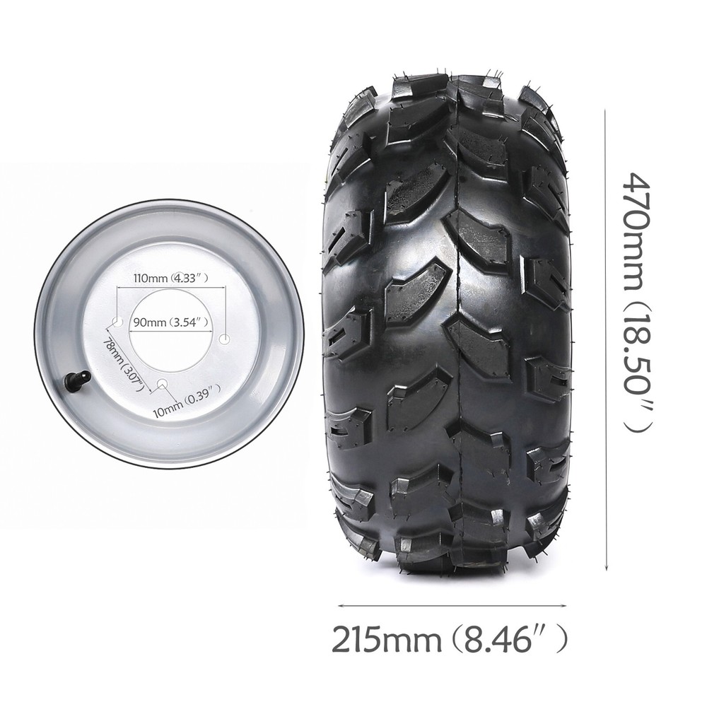 Fitment: For ATV Quad Trailer Go Kart Mower Garden Tractor Buggy Wheel Specification: Product Type:18*9.5-8 Wheel Condition:100% Brand New Color:Black Material:Nylon Size:18*9.50-8 Bolt Holes:4PCS Mounting Hole To Hole Distance:78mm Max Load:227LBS/115kg 4PR Max Inflate:24 P.S.I (165 Kpa) Operating Pressure:10 P.S.I Steering Spindle Knuckles Specification: Product Type:Wheel Steering Spindle Knuckles Material:Aluminum Alloy Color:Gold Diameter Of Centre Hole:17mm /0.67 in Hubs Specification: Product Type:Front Wheel Hubs With Bearings Assembly Material:Aluminum Alloy Color:Gold Axle Diameter:17mm/0.67 in Bolt To Bolt Space:78mm /3.07 in Stud:4 PCS Packing List: 2 * 18×9.5-8 Wheel (Rim + Tyre) 1 Pair Of Wheel Steering Spindle Knuckles 1 Pair Of Front Wheel Hubs With Bearings Assembly Note: ü Please check picture s and the size specifications for compatibility before purchasing .Also,please be aware that if an item doesn't fit due to a failure in pre-purchase checking, we are not be able to take responsibility for the return shipping cost. Model is just for reference , not definitely correct. Any question,welcome to contact us . ü If you have any problems with the received items, we kindly request that you reach out to us directly before considering leaving a neutral or negative feedback. We will strive to provide you with the best service. Thank you for your understanding and cooperation.Sincerely.