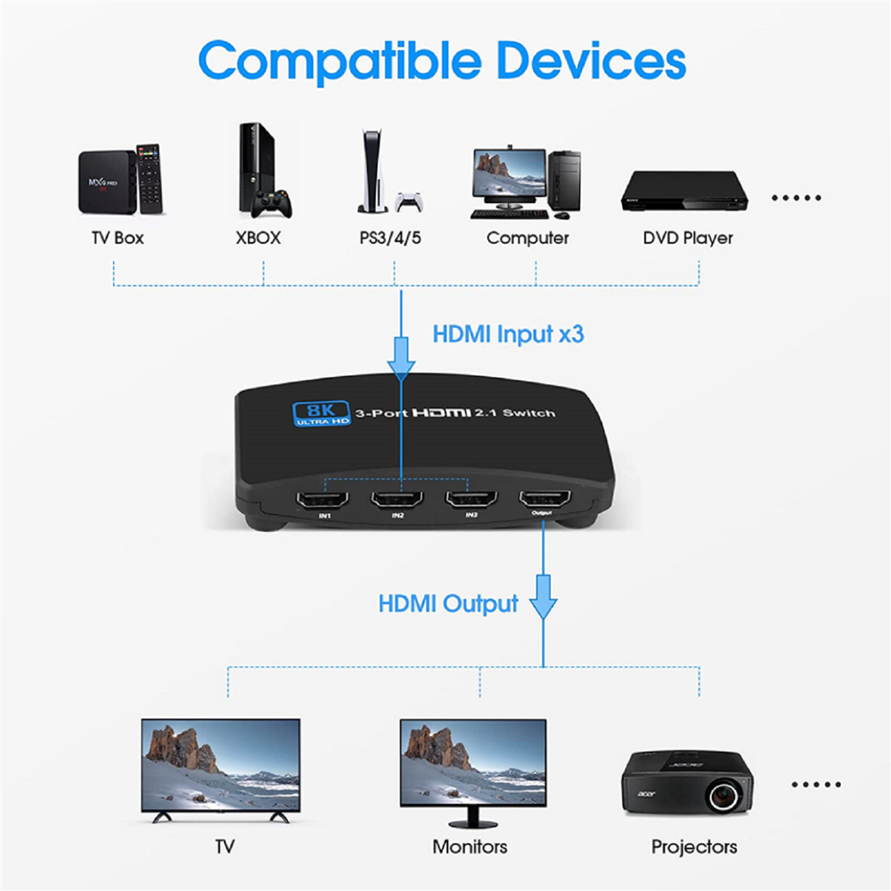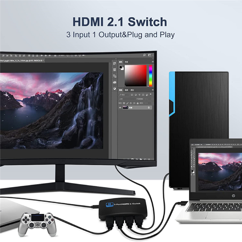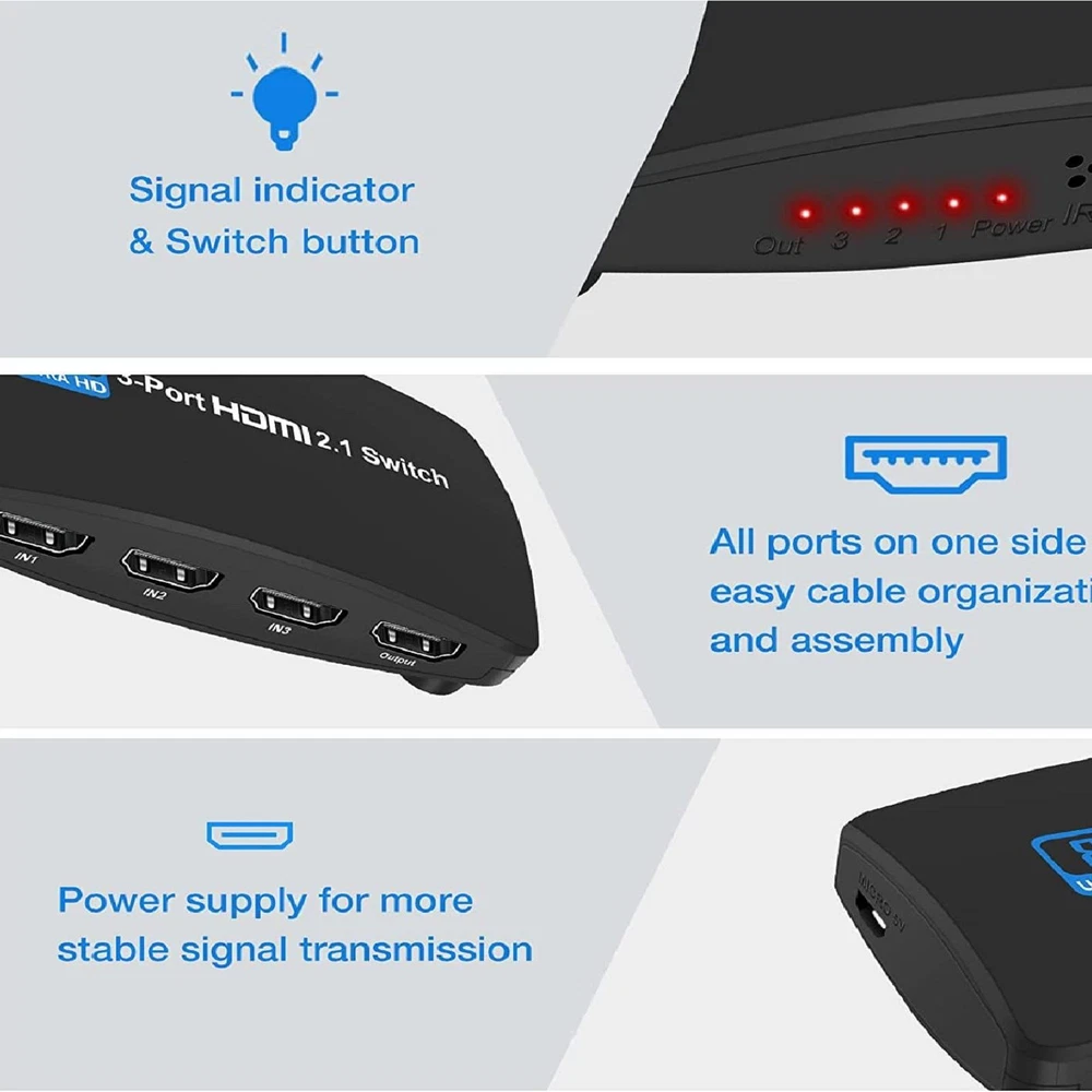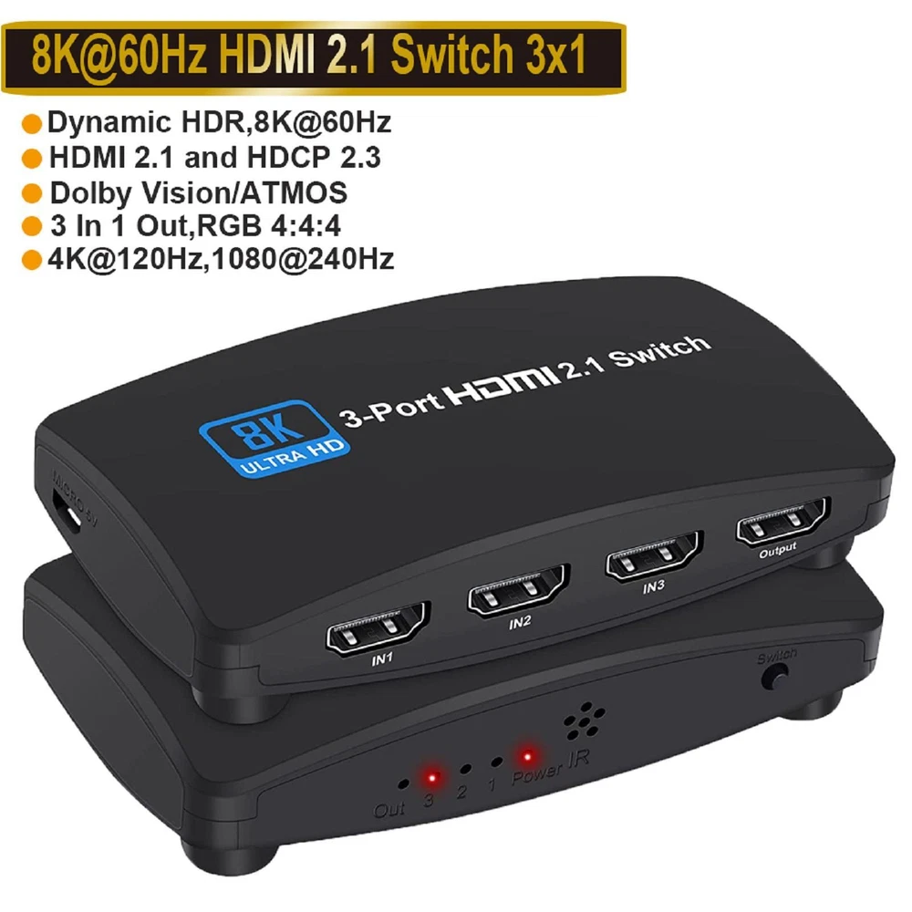 This HDMI switch is a game-changer! Flawless 8K/144Hz performance with zero lag—perfect for my PS5 and Xbox. Super easy to set up, and the compact design saves space. No more swapping cables! Fast shipping and great customer service. Highly recommend!