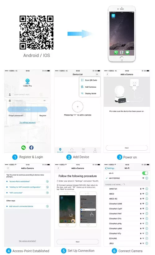 8MP Dual Lens (4MP Fixed Lens+4MP PTZ Lens) Resoluton Dual-lens dual-screen preview 360 degrees without dead ends Dual Camera No Blind Spot Alarm Notification Quick reaction to detecting motion. Easily monitor every corner of your life. Two Ways Audio Real-time communication with your families, the family interaction at anytime and anywhere. Simple and Flexible Storage Options Smooth Pan and Tilt Rotation 355 degree pan, 90 degree tilt. You can control it through the app directly whenever you want and wherever you are. Android/IOS/Windows Multiple Platform Support Multiple Platform monitor, support most popular smartphone and computer, Max SUPPORT Share 8-10 Family Member Remote Access Camera to Care Home. Do you still feel boring with these problem? Just use this camera, you can watch family / staff / pet / shop Unguarded area and watch your bayby And old parents at any time size APP connection Description Main Features: *Support 2.4G WIFI, Not support 5G WIFI *8MP Dual Lens (4MP Fixed Lens+4MP PTZ Lens) Resoluton; *Support black light full color, color night vision is clear *Minimum illumination, 0.02Lux (F2.0,VGC ON),O.Luxwith IR *4pcs infrared LED + 4pcs White LED, night vision is clear; *Support 2.4G WIFI, AP hotspot (without RJ45 Network port) *Dual Light switch automatic, Night Vision 5-10 Meters(varies from environment) *PTZ: rotates 355 degrees left and right and rotates 90 degrees vertically; *Embedded Linux system, ARM chip structure; Payment Delivery details Returns Contact Us Feedback Payment 1.We accept PayPal only. 2.Payment must be received within 7 business days of auction closing. 3.We ship to your eBay or Paypal address. Please make sure your eBay and Paypal address is correct before you pay. Delivery details We try our best to ship out same day for payment cleared before 5.00 PM (Pacific Time) , Order placed on weekend or holiday will be shipped on Monday or next working day. Below is the approximate delivery time to different countries (just estimated, not guaranteed): 7-25 working days to buyer in USA. Returns 1.We offer 30 days return policy. Please contact us within 30 days from the date you receive your order if you have any issues with the product and want to return. 2.All items must be returned in the original packaging and you must provide us with the tracking shipping number, specific reason for the return, and your eBay ID. 3.We will refund you FULL WINNING BID AMOUNT, upon receipt of the item in its original condition and packaging with all components and accessories included, AFTER BOTH Buyer and Seller cancel the eBay transaction. Or, you can choose to get a replacement. Contact Us All communication is done through EBAY MESSAGES ONLY. If any question, please feel free to contact us via "Ask seller a question" or "Contact Seller",We try our best to reply to your emails as soon as possible, due to high volume of daily incoming emails and time zone difference, we may not be able to reply your emails immediately. Please allow 1-2 business days for us to response. Feedback Feedbacks: When you receive the item and satisfied with the product, please leave us positive feedback. If for any reason you are not satisfied with your purchase from us, please contact so we can get to work and resolve this issue for you. Please don't leave neutral or negative feedback without giving us an opportunity to try and make it right. Our goal is to ensure a happy shopping experience with us. Your Positive feedback is very much appreciated!