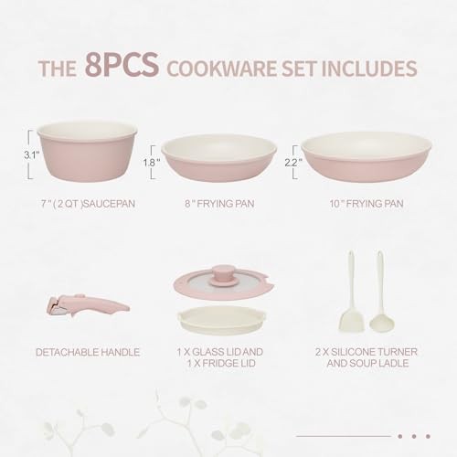 Return Policy Fast Delivery Trusted seller 8PCS Ceramic Cookware,Nonstick Pan, Removable Handle Ceramic Pots and Pans Set, Stackable Set, Nonstick Pan Pots and Pans Set Non Stick pot(Pink) Product Description 1. Non Toxic Nonstick Ceramic Coating: pots and pans set ceramic with Quality nonstick coating,the ceramic nonstick pan is PFOS/PFOA free, smokeless, safe and healthy. pots and pans set ceramic nonstick cookware ensures your daily Cooking with little oil for healthy diet. 2. Unique Detachable Handle: Our Detachable handle is professionally tested, no need to worry about wobbly handles. The strong locking procedure to prevent accidental touch-More Safer. Remove the handle during cooking-to prevent it from averheating and discolarationand ensure its durability. 3. Storage Easy to Clean: Pots and pans set with detachable handles allow for compact nesting, optimizing 75% kitchen cabinet space and providing a healthy cooking environment,it’s easy storage for cabinets or RVs 4. Multi-Functional Set: One set solves multiple needs, can be used as tableware and grill pan, and can be stored in the refrigerator with the lid on. 5. 8Piece Cookware Set Includes: 8 Inch 10 Inch Frying Pan, 7” 2QT SaucePan , 1 x 7” glass lid , 1 x 7” Fridge Lid , 1 x Detachable Handle , 1 x Silicone Turner, 1 x Soup Ladle Shipping Returns Payment Shipping Shipping is FREE to all addresses other than APO/PO boxes in the lower 48 states. All our stock ships from US-based warehouses. Shipped via USPS or UPS (depending on location and package weight) Unless stated otherwise, all orders will ship within 24-72 hours of your payment being processed. Check our feedback to see the great reviews of FAST shipping we offer. Returns Seller does not accept returns Payment We currently accept payment via eBay managed payments only. Once payment is cleared, we will dispatch your shipment within 1-3 business days. Please refer to the "Shipping" tab for more information regarding shipping speed to your destination.