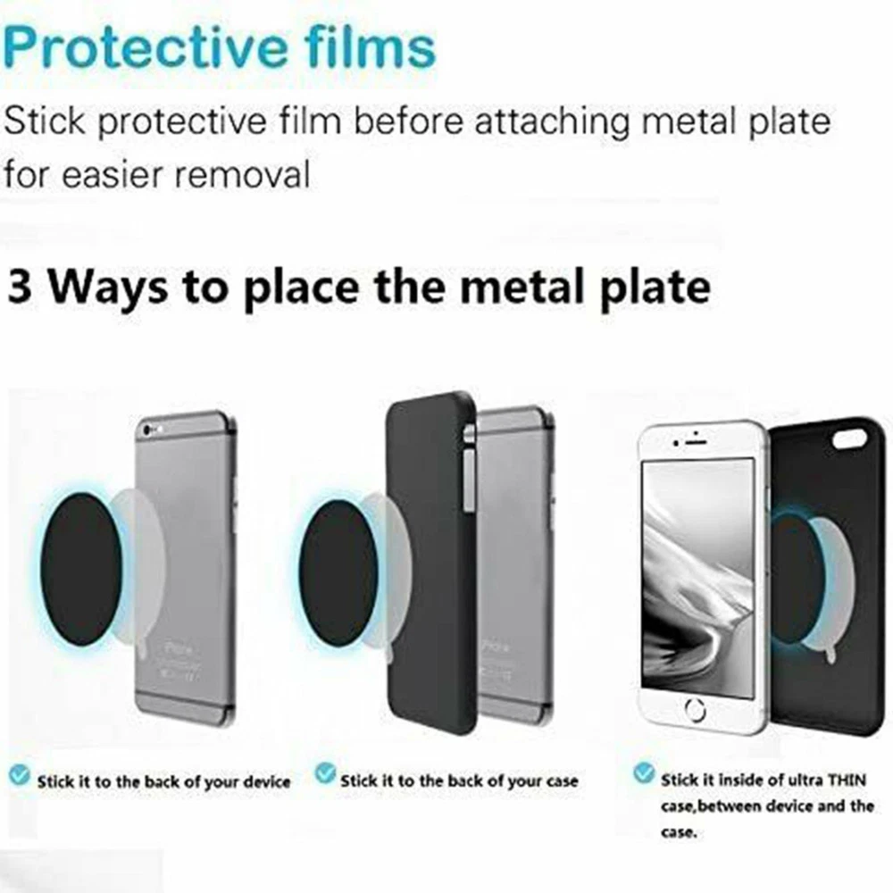 SAFE & SECURE SHOPPING 100% SATISFACTION GUARANTEED FAST SHIPPING Store Categories Store Categories You may also like 8Pack Phone Magnet Sticker Metal Plates For Magnetic Car Mount Smartphone Holder Product Description Descriptions: 1. 100% Brand new and High quality! 2. This car magnet metal plate is made to use with magnetic mobile phone car mount, magnetic air vent mount and other magnetic smartphone car mount. Good quality and value replacement metal plates for magnetic cell phone holder. 3. All 8 magnet mount plates have strong adhesive on the back. 4 rectangular and 4 round. Provides enough options to use with multiple devices. The rectangular thin metal plate is better for larger phones, mini tablets and GPS devices. 4. Metal plates are not magnetic, we recommend this metal mounting plate along with universal magnetic mounts for dashboard, vents, cd slot or windows. Features: Great to use with ALL smartphones, tablets and GPS devices. The bigger rectangular mount metal plate can hold your GPS or tablets more stable. Safely protect your devices or hands from scratching. Easy to attach and remove without leaving a residue. Specifications: Material: Metal Round Diameter: about 4cm Rectangular: about 6.5*4.5cm Thickness: 0.4mm Package Included: 4 x Round Metal Plates 4 x Rectangular Metal Plates Shipping Returns Contact Us Payment Shipping 1. Items sent from US warehouse. 2.Receiving time = Processing time + Shipping time 3. Processing Time: Around 1-2 business Days 4. Shipping Time: 3-5 business day it may have a little delay during some holiday (such as Christmas),any problem ,please feel free to contact Returns 1. 30 days warranty from the purchased date. Please contact us via email before returning the defective item. 2.Our warranty does not extended to any product that are physically damaged or that are not under normal operating conditions as result of misuse or improper installation on the buyer/user's part. 3.Return items should include the original packaging and all accessories. buyers MUST contact us for the returning address. 4.In all cases, buyers pay shipping fees at their own cost to return products for exchange or refund. We will be responsible for the postage of replacements. Refund will be made upon receipt of the returned item. Contact Us Pls contact us if you have any problems,we will try our best to solve for you Payment We accept all verified payment from eBay. Copyright © 2022 Tongtool