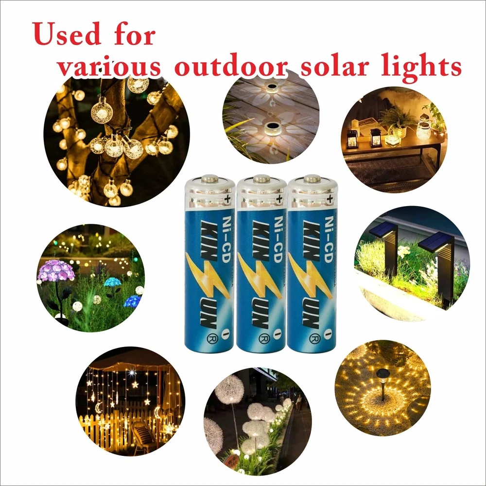 8-Pack Rechargeable Battery 1.2V Ni-Cd AA 900mAh for Outdoor Solar Garden Lig... HIGH CAPACITY AND LONG LASTING - Much longer running time than the normal AA600mAh, high power to the solar lights create bright lightening. Replaces all solar brands of Ni-Cd 1.2V AA 900mAh or less capacity solar light batteries. SUPER AFFORDABLE PRICE - 8 Batteries inside the package. Excellent quality at a great economical price, rebuilt the life and save big on your solar garden light, much cheaper than buying in your local supermarket or chain store. DESIGNED SPECIFICALLY TO POWER OUTDOOR SOLAR LIGHTS - Lawn garden lights landscape lights path lights walkway lights porch and patio lights uses the power of sunlight to recharge during the day, batteries then powers the light at night. If there is not enough sun out, you can also use the universal AA battery charger to pre-charge your batteries before putting them into your solar lights, then it can assist your solar lights in charging your batteries EASY TO REPLACING - All you have to do is to locate the solar light battery cover, remove it, take out the defective batteries and replace them with new ones. If no battery cover can be found, the solar light needs to be taken apart, usually with one or two screws. On most models you’ll find the screws on the top or bottom of the light. Once the unit is open you’ll have access to the batteries WIDE APPLICATIONS - Except ideal for garden solar lights, it also ideal for remote controls, torches, clocks and toys, use the universal AA battery charger to recharge your batteries for your household devices Shipping We offer FREE shipping on all orders! We ship within Three business days of payment, usually sooner. We use a selection of shipping services such as UPS, FedEx, USPS etc. We only ship to the lower 48 states, no APO/FPO addresses or PO Boxes allowed. Local pickups and combined shipping options are not provided at this time. Return You can return a product for up to 30 days from the date you purchased it. Any product you return must be in the same condition you received it and in the original packaging. Please keep the receipt. Payment We accept payment by any of the following methods: PayPal Please pay as soon as possible after winning an auction, as that will allow us to post your item to you sooner! Feedback Customer satisfaction is very important to us. If you have any problem with your order, please contact us and we will do our best to make you satisfied. Contact Us If you have any queries, please contact us via ebay. We usually respond within 24 hours on weekdays. Please visit our eBay store to check out other items for sale! Thank you for shopping at our store.