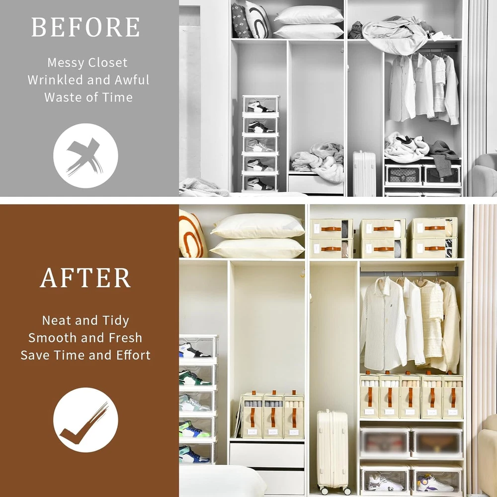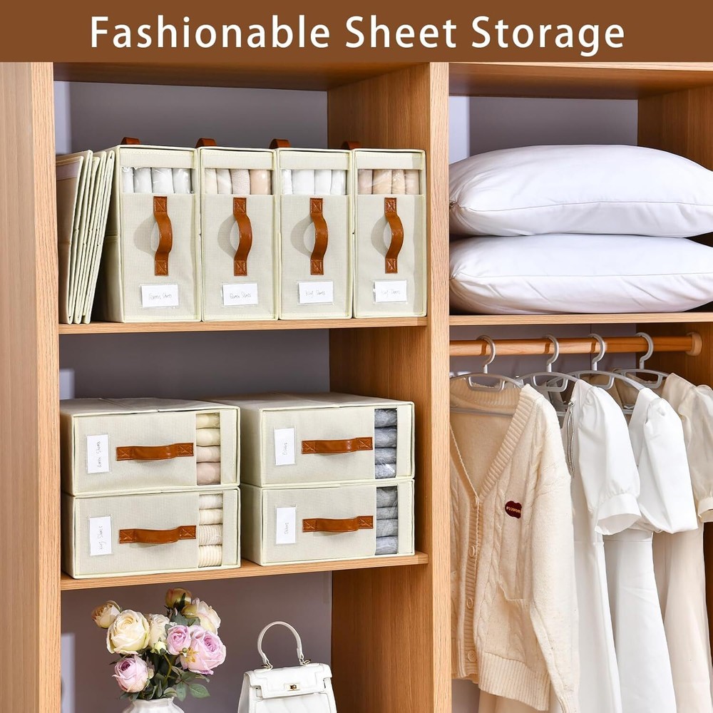 8-Pack Grey Foldable Linen Closet Organizers for Efficient Storage
