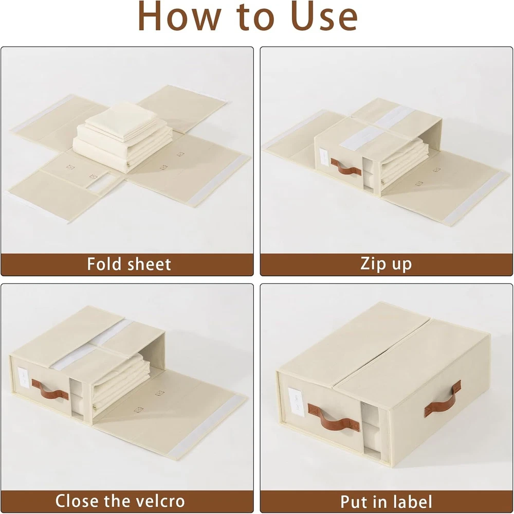 4-Pack Large Canvas Comforter Storage Bags for Closet Organization