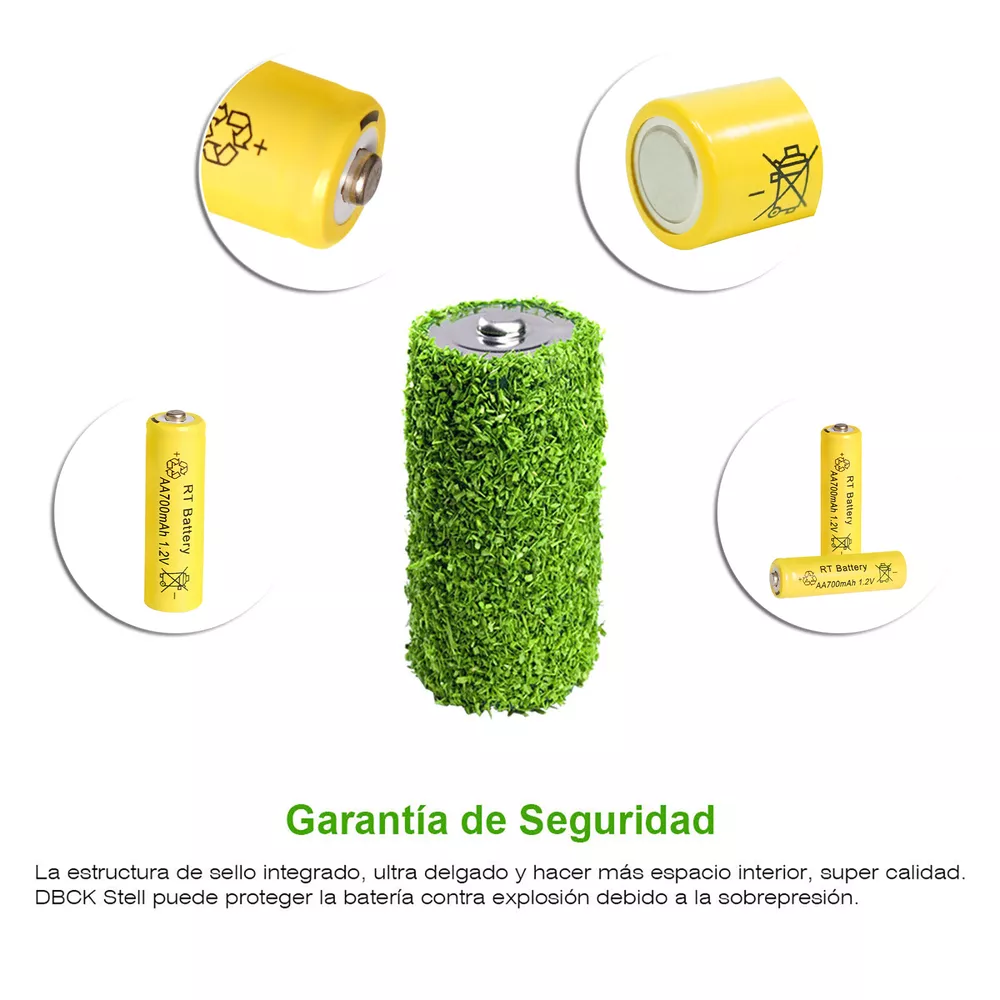 8Pcs 1.2v AA Rechargeable Battery 700mAh Ni-MH Batteries for Solar Lights + Box NiMH AA Rechargeable Battery 1.2v Features: 1.【Widely used】 The AA batteries rechargeable 1.2v is perfect for solar garden lights, landscape lights, lawn lights, etc.It can replace all disposable alkaline batteries for low power electronic products. 2.【Easy to Charge】 The AA rechargeable batteries Ni-MH can be charged by solar lights or standard charging devices. Better high-temperature performance than other types of batteries, can be used from -4℉ to 140℉, and can be charged from the sun even in the snow. 3.【Safe and Reliable】 The Ni-MH AA 1.2v rechargeable battery is very safe and reliable. For transportation safety, these Ni-MH AA batteries are only pre-charged to 30%, so please charge them before use for longer working time. 4.【Durable】 Our Ni-MH AA batteries rechargeable have a capacity of 700mAh and can be recharged at least 500 times continuously. Save you the cost of buying disposable alkaline batteries and reduce the harm to the environment. 5.【Suggestion】 Please charge the battery after each power exhaustion, otherwise it will affect the capacity and life. In addition, charge every 3 months to extend the life of the battery. NiMH AA Rechargeable Battery 1.2v Specification: Capacity: 700mAh Voltage: 1.2V Size: diameter 14mm*50 mm Terminal Type: Button Top Chemistry: Ni-MH (Nickel Metal Hydride) Rechargeable Times: Up to 1000 times No Memory Effect Note: Do not disassemble or modify the rechargeable battery Package Included 8 x Ni-MH AA 700mAh Rechargeable Battery 1.2v 1x AA AAA Battery Box Warm Tips: 1. Before use, please remove the plastic packaging film of the battery. 2. Please check the "+" and "—" directions of the battery before you charge the battery. 3. Do not put the product into fire, short circuit, dissassemble and extrude. 4. Do not mix charging with different type of batteries, which may explode or leak, causing personal injury. 5. Please use up the power each time, then recharge it otherwise it will affect its capacity and lifetime. 6. Please take out the battery if you won't use for a long time to avoid battery leakage. 7. Note:Please find us in first time when you find the parcel Broken/Scratch/Function Error/Miss Parts/Unwork/has not arrived etc, we always have more details and solutions, even duty for your order. On Dec 27, 2024 at 23:01:09 PST, seller added the following information: