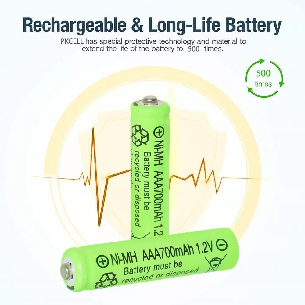 8Pcs AA & 8Pcs AAA Ni-MH Rechargeable Batteries 1.2v with Plastic Storage Case Warm Tips: Before use, please remove the plastic packaging film of the battery. AA / AAA NiMH Battery 1.2v Features: 1.【Widely used】 The AA batteries rechargeable 1.2v is perfect for solar garden lights, landscape lights, lawn lights, etc.It can replace all disposable alkaline batteries for low power electronic products. 2.【Easy to Charge】 The AA rechargeable batteries Ni-MH can be charged by solar lights or standard charging devices. Better high-temperature performance than other types of batteries, can be used from -4℉ to 140℉, and can be charged from the sun even in the snow. 3.【Safe and Reliable】 The Ni-MH AA 1.2v rechargeable battery is very safe and reliable. For transportation safety, these Ni-MH AA batteries are only pre-charged to 30%, so please charge them before use for longer working time. 4.【Durable】 Our Ni-MH AA batteries rechargeable have a capacity of 700mAh and can be recharged at least 500 times continuously. Save you the cost of buying disposable alkaline batteries and reduce the harm to the environment. 5.【Suggestion】 Please charge the battery after each power exhaustion, otherwise it will affect the capacity and life. In addition, charge every 3 months to extend the life of the battery. NiMH AA Battery 1.2v Specification: Capacity: 700mAh Voltage: 1.2V Size: diameter 14mm*50 mm Terminal Type: Button Top Chemistry: Ni-MH (Nickel Metal Hydride) Rechargeable Times: Up to 1000 times No Memory Effect Note: Do not disassemble or modify the rechargeable battery NiMH AAA Battery 1.2v Specification: Capacity: 700mAh Voltage: 1.2V Size: diameter 10mm*44 mm Terminal Type: Button Top Chemistry: Ni-MH (Nickel Metal Hydride) Rechargeable Times: Up to 1000 times No Memory Effect Note: Do not disassemble or modify the rechargeable battery Package Included: 8X Ni-MH AA 1.2v Rechargeable Battery 700mAh 8X Ni-MH AAA 1.2v Rechargeable Battery 700mAh 4X Plastic Battery Storage Cases Warm Tips: 1. Before use, please remove the plastic packaging film of the battery. 2. Please check the "+" and "—" directions of the battery before you charge the battery. 3. Do not put the product into fire, short circuit, dissassemble and extrude. 4. Do not mix charging with different type of batteries, which may explode or leak, causing personal injury. 5. Please use up the power each time, then recharge it otherwise it will affect its capacity and lifetime. 6. Please take out the battery if you won't use for a long time to avoid battery leakage. 7. Note:Please find us in first time when you find the parcel Broken/Scratch/Function Error/Miss Parts/Unwork/has not arrived etc, we always have more details and solutions, even duty for your order. On Dec 27, 2024 at 23:01:12 PST, seller added the following information: