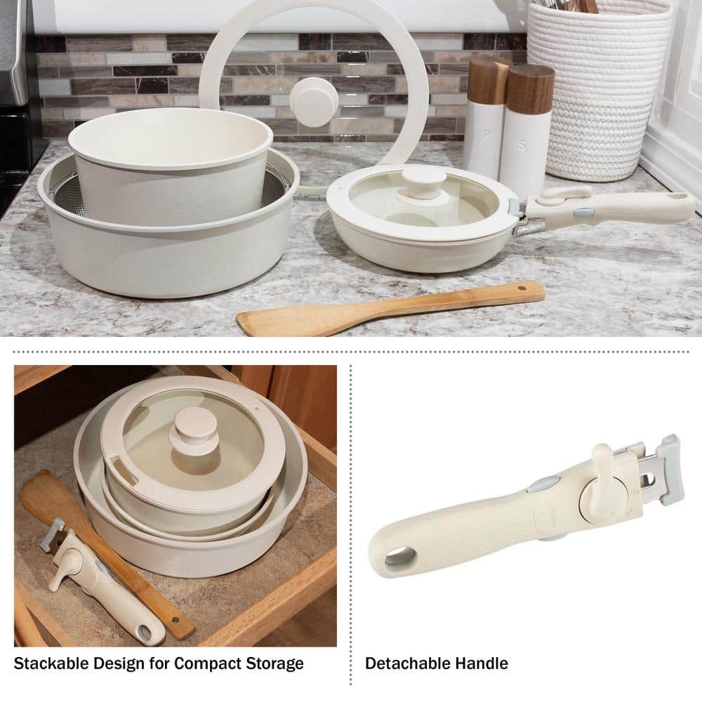 Cook up a variety of dishes with the 8-Piece Pots and Pans Set Non Stick by HOME-COMPLETE. These pots and pans are made of durable aluminum alloy with a ceramic coating, making them nonstick, dishwasher safe and long-lasting. This kitchen set comes with a 1.48 qt. saute pan, a large 4.44 qt. sauce pan, a smaller 2.96 qt. sauce pan, 2 lids, a removable handle, a wooden spoon and a metal steam basket for a complete cooking set perfect for new homeowners, first time renters and college students. Please note, this cookware set is not oven safe. 8-piece non stick pots and pans set comes with a 1.48 qt. frying pan, 2.96 qt. and 4.44 qt. pots, a detachable handle, 2 lids, a wood spatula and a metal steamer basket Conveniently detachable handle, this pot set is st... Gracefulcommodity Your Best Online Business Partner 8-Piece Aluminum Cookware Set with Handle in Cream Cook up a variety of dishes with the 8-Piece Pots and Pans Set Non Stick by HOME-COMPLETE. These pots and pans are made of durable aluminum alloy with a ceramic coating, making them nonstick, dishwasher safe and long-lasting. This kitchen set comes with a 1.48 qt. saute pan, a large 4.44 qt. sauce pan, a smaller 2.96 qt. sauce pan, 2 lids, a removable handle, a wooden spoon and a metal steam basket for a complete cooking set perfect for new homeowners, first time renters and college students. Please note, this cookware set is not oven safe. 8-piece non stick pots and pans set comes with a 1.48 qt. frying pan, 2.96 qt. and 4.44 qt. pots, a detachable handle, 2 lids, a wood spatula and a metal steamer basket Conveniently detachable handle, this pot set is stackable for compact storage, ideal for use in small kitchens, apartments, RVS or while camping Kitchen pots and pans set are made of durable aluminum alloy with a ceramic coating, designed to be nonstick, dishwasher safe and long-lasting Use this cooking pan set on gas, electric, ceramic or induction burners to saute, boil and steam up to 250°C or 482°F(not oven safe) Materials: aluminum alloy with ceramic coating and phenol-formaldehyde resin handle Dimensions: saute pan: 8.2 in. L x 2 in. H, large saucepan: 10.6 in. L x 3.5 in. H, small saucepan: 8.2 in. L x 3.7 in. H, handle: 7.4 in. H x 1.9 in. H, lids: 10.6 in. and 8.9 in. Color: cream Color Family:Cream|Color Family:Cream|Color/Finish:Cream|Color/Finish:Cream|Cooktop Compatibility:Electric Smooth Top,Gas,Induction|Cooktop Compatibility:Electric Smooth Top,Gas,Induction|Features:Dishwasher Safe,Durable,Induction Safe,Nonstick|Features:Dishwasher Safe,Durable,Induction Safe,Nonstick|Includes:Frying Pan,Saute Pan|Includes:Frying Pan,Saute Pan|Individual/Set:Set|Individual/Set:Set|Kitchen Product Type:Cookware Set|Kitchen Product Type:Cookware Set|Material:Aluminum|Material:Aluminum|Maximum Heating Temperature (Fahrenheit):482|Maximum Heating Temperature (Fahrenheit):482|Number of Pieces:8|Number of Pieces:8|Number of cookware pieces:8|Number of cookware pieces:8|Package Type:Assorted Set|Package Type:Assorted Set|Returnable:90-Day|Returnable:90-Day|Manufacturer Warranty:30 Day Limited Warranty|Manufacturer Warranty:30 Day Limited Warranty Item Specifics Brand HOME-COMPLETE Type Pan Sets UPC 197315494126 Model KIT-PAN-1 Payment Returns Gracefulcommodity Your Best Online Business Partner DESCRIPTION PAYMENT SHIPPING RETURN POLICY CONTACT US Shop Category Store Home Hot Item Picture New List Item Help & Info Payment Policy Shipping Policy Return Policy FAQ About Us 8-Piece Aluminum Cookware Set with Handle in Cream Cook up a variety of dishes with the 8-Piece Pots and Pans Set Non Stick by HOME-COMPLETE. These pots and pans are made of durable aluminum alloy with a ceramic coating, making them nonstick, dishwasher safe and long-lasting. This kitchen set comes with a 1.48 qt. saute pan, a large 4.44 qt. sauce pan, a smaller 2.96 qt. sauce pan, 2 lids, a removable handle, a wooden spoon and a metal steam basket for a complete cooking set perfect for new homeowners, first time renters and college students. Please note, this cookware set is not oven safe. 8-piece non stick pots and pans set comes with a 1.48 qt. frying pan, 2.96 qt. and 4.44 qt. pots, a detachable handle, 2 lids, a wood spatula and a metal steamer basket Conveniently detachable handle, this pot set is stackable for compact storage, ideal for use in small kitchens, apartments, RVS or while camping Kitchen pots and pans set are made of durable aluminum alloy with a ceramic coating, designed to be nonstick, dishwasher safe and long-lasting Use this cooking pan set on gas, electric, ceramic or induction burners to saute, boil and steam up to 250°C or 482°F(not oven safe) Materials: aluminum alloy with ceramic coating and phenol-formaldehyde resin handle Dimensions: saute pan: 8.2 in. L x 2 in. H, large saucepan: 10.6 in. L x 3.5 in. H, small saucepan: 8.2 in. L x 3.7 in. H, handle: 7.4 in. H x 1.9 in. H, lids: 10.6 in. and 8.9 in. Color: cream Color Family:Cream|Color Family:Cream|Color/Finish:Cream|Color/Finish:Cream|Cooktop Compatibility:Electric Smooth Top,Gas,Induction|Cooktop Compatibility:Electric Smooth Top,Gas,Induction|Features:Dishwasher Safe,Durable,Induction Safe,Nonstick|Features:Dishwasher Safe,Durable,Induction Safe,Nonstick|Includes:Frying Pan,Saute Pan|Includes:Frying Pan,Saute Pan|Individual/Set:Set|Individual/Set:Set|Kitchen Product Type:Cookware Set|Kitchen Product Type:Cookware Set|Material:Aluminum|Material:Aluminum|Maximum Heating Temperature (Fahrenheit):482|Maximum Heating Temperature (Fahrenheit):482|Number of Pieces:8|Number of Pieces:8|Number of cookware pieces:8|Number of cookware pieces:8|Package Type:Assorted Set|Package Type:Assorted Set|Returnable:90-Day|Returnable:90-Day|Manufacturer Warranty:30 Day Limited Warranty|Manufacturer Warranty:30 Day Limited Warranty Item Specifics Brand : HOME-COMPLETE Type : Pan Sets UPC : 197315494126 Model : KIT-PAN-1 Payment Returns All rights reserved.