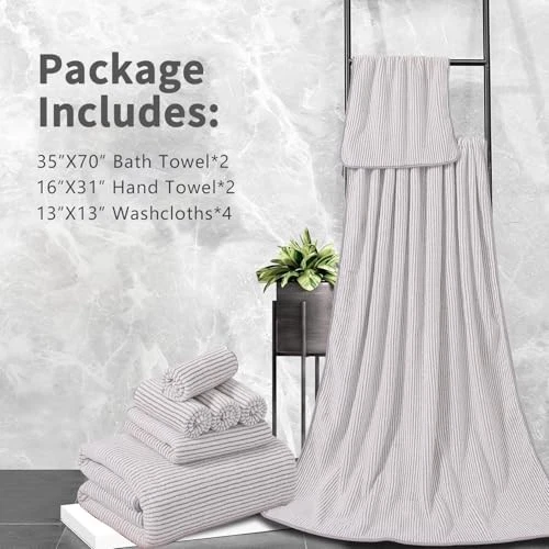 Return Policy Fast Delivery Trusted seller 8-Piece Premium Towel Set for Bathroom|2 Oversized Large Bath Sheet,2 Hand Towels,4 Washcloths|Soft Cozy Highly Absorbent Fast Dry Microfiber Shower Towel Set for Hotel Bathroom Essentials,Beige White Product Description 8 PIECE SOFT TOWEL SET:Includes 2 oversized bath sheet towels (35 inch x 70 inch), 2 hand towels (16 inch x 31 inch),4 washcloths (13 inch x 13 inch).versatile towel,home bathroom towels,premium towel set Can fully meet your needs,soft bath towels is thick and large,Can completely wrap your body,You will enjoy the experience of softness, moisture absorption, luxury, lightness,perfect for home bathroom, beach, gyms, shower rooms,swimming pools,spas,hotels,salon,college dorm room essentials. SOFT FLUFFY BATH TOWEL SET: 700 GSM super soft towel set are made up of 100% microfiber material,premium bathroom towel ultimate softness. The hotel quality towel is lightweight and durable,bathroom towel set does not fade,does not pill and it tends to be more stretch, Shrink Resistant, which ensures long lasting durability and reliability,unique pattern bath towels provide a luxurious bathroom design to enhance your bathing design. soft fluffy comfort feel towel set for your daily use. BETTER WATER ABSORPTION:Highly Absorbent bath towels,feel soft,bathroom towels have high water absorption and fluffy,towels very suitable for hands and body,Soft warm bath towels giving you a comfy experience after bathing, and bath towels can quickly absorb the moisture on your body,towel set is designed to provide users with all their basic bathroom drying needs to wrap around your hair or to dry your body,high quality microfiber ensure optimum softness, fluffiness and wonderful absorbency. LIGHTWEIGHT LASTING DURABLE:Bath towel is lightweight and durable,shower towel edges with professional hemmed seaming finish,prime quality towel set have a reinforced double stitched hem, designed to prevent fraying and tearing while remaining soft. Your towel will be durable and maintain its best condition,The towel is soft and delicate, which is very suitable for people with sensitive skin. The soft looped cloth will not harm your skin. EASY TO CARE:Wash before use,Machine washable, easy to care and clean. These towels are specially processed to make the dryer take less time, thus saving time and energy costs. They flow completely out of the dryer, soft and fluffy for the next time,towels can absorb 10 times their weight in water makes quick drying large surface and easy,This towel can be washed and reused hundred of times which remain soft after multiple wash and dry cycles. Shipping Returns Payment Shipping Shipping is FREE to all addresses other than APO/PO boxes in the lower 48 states. All our stock ships from US-based warehouses. Shipped via USPS or UPS (depending on location and package weight) Unless stated otherwise, all orders will ship within 24-72 hours of your payment being processed. Check our feedback to see the great reviews of FAST shipping we offer. Returns Seller does not accept returns Payment We currently accept payment via eBay managed payments only. Once payment is cleared, we will dispatch your shipment within 1-3 business days. Please refer to the "Shipping" tab for more information regarding shipping speed to your destination.