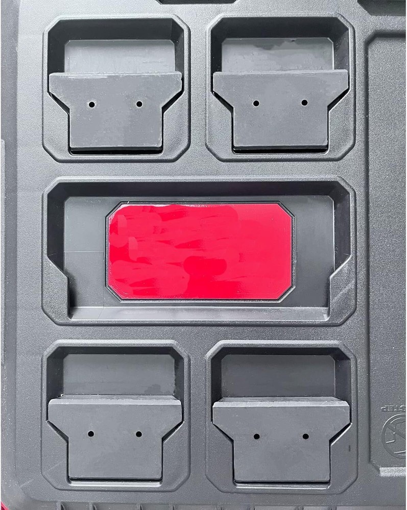 ★Function:Compatible with the Milwaukee Packout System.Add what you want to your milwaukee packout suitcase.Use them for plywood to make a work top/bench on packout. ★Perfect & Tight Fit:Great accessorie for your Milwaukee collection.Ride very conveniently atop your PackOut.Get a good connection with packout lids.Easy one handed release but still holds on if youflip the lid upside down. ★No 3D printed Material:These packout mount accessories are make of very durable ABS plastic.They are very strength and durability. ★Tricks for attachment:Put the mounting plate in your Packout, lay a piece of paper out, and poke holes or use marker and mark the screw holes, then put your paper template on your non-Packout item. ★100% Satisfaction Guarantee: We believe our Feet for Packout have good quality and our service will obtain your alike. Please feel free to contact us if you have any question. JILINWEI Mounting Feet for Milwaukee Packout Light friction holds feet securely in slot. Just simply screw/bolt the 'feet' to the base of the box, vacuum, panel etc and you're ready to attach it to your Milwaukee Packout cases. Made from high quaility ABS plastics. Package Contents: 8 x Mounting Feet for Packout(Red)
