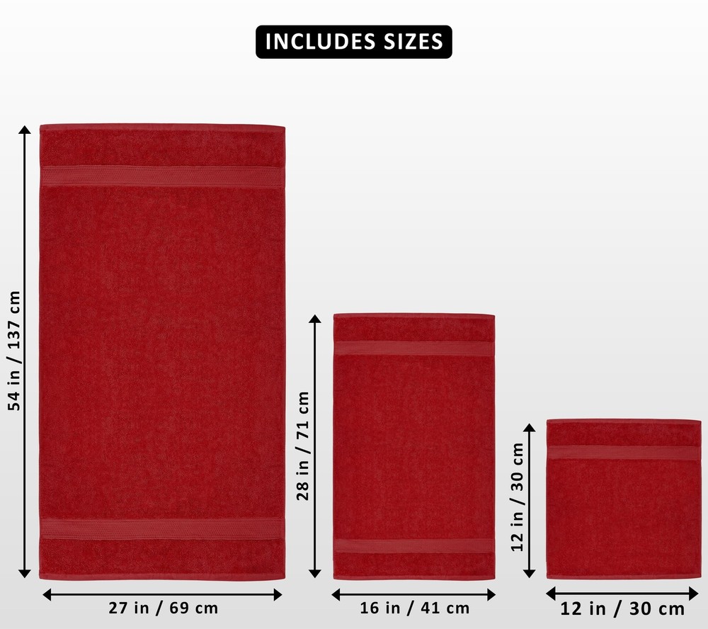Absolutely love this towel set! The 600 GSM cotton is so plush and absorbent—dries quickly and feels amazing against the skin. Perfect for daily use, gym, or guests. The rich red color stays vibrant, and the set includes everything you need. Great value for the quality—definitely feels like a luxury upgrade without the high price tag. Highly recommend!