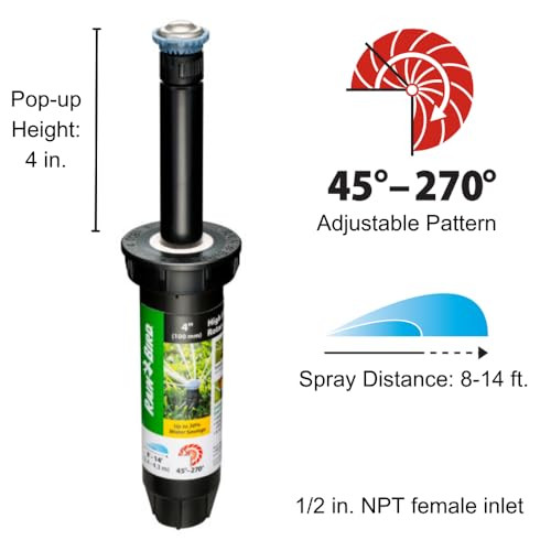 Product Description 8SARVAPRO High-Efficiency Rotary Sprinkler, Hand Adjustable 45° - 270° Pattern, 8' - 14' Spray Distance, 4" Pop-up Height. The remarkable 8SARVAPRO sprinkler combines the world #1 installed commercial-1800 Series body with a water-saving professional R-Van rotary nozzle! Multiple rotating streams of large water droplets deliver wind-resistant, uniform coverage throughout the pattern with up to 30% water savings over traditional pop-up nozzles. Equipped with an adjustable 45° to 270° nozzle the 8SARVAPRO can replace existing quarter, half and adjustable pattern conventional pop-up sprays or be used in the same zones. Operating at a low precipitation rate, the water-lubricated rotating stream is visually appealing, quiet and maintenance-free. It’s a perfect solution for irrigation systems with low water pressure or compacted soils. The highly efficient water delivery reduces soil erosion, wasteful water runoff and is gentle enough for newly seeded areas. Water and nutrients penetrate the soil, saving water and money while helping maintain a healthy landscape. Nozzle design allows easy hand adjustment of distance and pattern at the nozzle and potential clogs are cleared by pulling up on the nozzle to flush out debris all while the water is running and without tools!! The extended 8’ to 14’ spray distance covers more area with fewer heads and is ideal for slopes and hillsides. The commercial-1800 Series body is famous for reliable operation and built-in long-life from heavy-duty materials, superior components and features. Exclusive co-molded wiper seal and encased plastic "cage" deliver unmatched resistance to grit, pressure and the environment. A heavy-duty plastic body and cover resist edger strikes, pressure spikes and unexpected abuse. The tapered pop-up neck and a precision flushing action at pop-down clear debris for positive stem retraction in all soil types. A stainless-steel, heavy gauge spring ensures flush retraction of the stem after every watering. A -piece stem ratchet mechanism provides easy pattern alignment and added durability. The protected closed-case design is ideal for "creeping" grasses, sandy soil, and other harsh surroundings. A pressure-activated seal eliminates excess “flow-by” allowing more heads to be installed in the same zone; reducing run times and saving money. Specifications: 0.6” per hour precipitation rate, operates from 20 to 55 psi with no misting at high pressures. R-VAN Nozzles meet the requirements of the ASABE/ICC 802-2014 standard. May be used with 5000 Series MPR Rotors on the same zone. **Also available in a 360° full pattern model (8RVNFPRO). VERY IMPORTANT: state legislation prohibits sale into CA, CO, HI, VT, MA, ME, NY, OR, RI, WA, and Washington DC. For these 11 states, look for complying model 8SAPROPR. "The Intelligent Use of Water" From the Manufacturer Corporation is a privately held company founded in 1933 during the agricultural boom in California. We’re recognized as the #1 manufacturer and provider of irrigation products and services in the world. With sales offices around the globe; we offer over 4,000 water-saving irrigation products in more than 130 countries. Since the very beginning, has produced and offered the industry’s broadest range of high-quality irrigation products for: farms, golf courses, sports arenas, commercial developments and homes. Over the past 80-years has received more than 450 patents worldwide. Including the first for irrigation in 1935 on our original impact-drive sprinkler (U.S. Patent #1,997,901) which revolutionized agricultural food-production and ushered in a new era in irrigation worldwide. In 1990 this original impact sprinkler was designated a historic landmark by the American Society of Agricultural Engineers. Our products cover all aspects of irrigation…timers/controllers, pop-up rotary sprinklers, pop-up spray head sprinklers, sprinkler nozzles, irrigation valves, Drip irrigation, drainage and much more. These products have been chosen and installed worldwide in the largest and most prestigious projects for residential, commercial, agricultural and golf course irrigation. is committed to The Intelligent Use of Water™ extending beyond products to education, training and services for the industry and the community. Our legacy is to design and manufacture only products of the highest value and quality. We’re grateful to have received numerous recognition awards from many of our valued partners. “The Intelligent Use of Water" VERY IMPORTANT: state legislation prohibits sale into CA, CO, HI, VT, MA, ME, NY, OR, RI, WA, and Washington DC; complying model = 8SAPROPR Hand adjustable, -sprinkler sprays multiple rotating streams of large water droplets in a 45 to 270° pattern Provides ultra-uniform, wind resistant coverage from sprinkler head to edge of pattern Up to 30% water savings and further spray distance than traditional pop-up spray nozzles Replace existing pop-up sprays or use in the same zone; perfect for low water pressure or compacted soils Reduces soil erosion, wasteful water runoff and gentle enough for newly seeded areas No Tools Required - Adjust 8' to 14' spray distance and remove clogs by hand while water is running Flush out debris or a potential clog by simply pulling up on nozzle during operation Commercial-UV and rust-resistant stainless-steel components ensure long-life Tapered stem and flushing action clear debris to ensure stem pops-down after watering