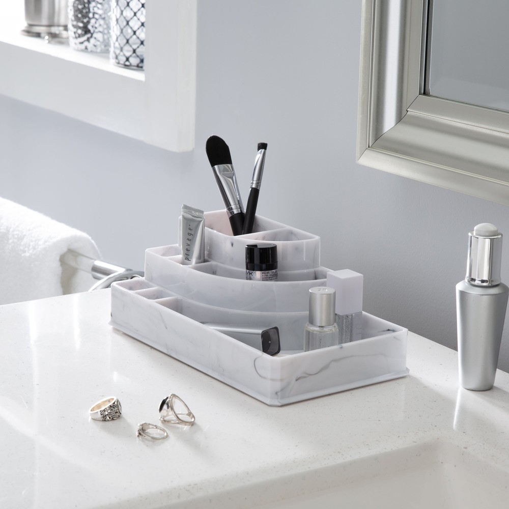 About this item 8 Section Cosmetic and Jewelry Holder Makeup Organizer Dimensions: 8.78" x 5.04" x 3.15" 8 Compartments Ideal for bathroom, vanity, or dresser Great for holding cosmetics, jewelry, and toiletries Durable, lightweight material