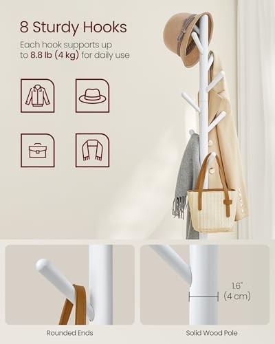 Return Policy Fast Delivery Trusted seller Coat Rack, Free Standing Coat Stand, Hall Coat Tree with 8 Hooks and Storage Shelf, 67.2 Inch Tall, for Coats, Hats, Bags, for Entryway, Hallway, Bedroom, Cloud White URCR040W01 Product Description 【MULTIFUNCTIONAL COAT RACK】With 8 hooks for your coats, hats, and bags, and a handy shelf for sunglasses, wallets, and keys, this coat rack keeps your essentials in one convenient spot, simplifying your daily routine 【SAFE, STABLE, AND STURDY】Rounded hooks protect your clothes from scratches. A large base provides stable and reliable support. Each hook holds up to 8.8 lb, and the shelf holds up to 22 lb, giving you peace of mind that your belongings are secure 【PERFECT HEIGHT, EASY ACCESS】At 67.2" tall, this coat stand makes it simple to reach items on the top hook. The open shelf, just 18.6" from the ground, lets you grab and store your belongings with ease 【ADAPTABLE USE】Blending practical use with aesthetic charm, this freestanding coat rack is the perfect addition to tidy up and beautify your entryway, hallway, bedroom, walk-in closet, or office 【HASSLE-FREE ASSEMBLY】No need to be botd about the assembly. The marked parts and easy-to-follow instructions will help you to set up this hall tree in jig time Shipping Returns Payment Shipping Shipping is FREE to all addresses other than APO/PO boxes in the lower 48 states. All our stock ships from US-based warehouses. Shipped via USPS or UPS (depending on location and package weight) Unless stated otherwise, all orders will ship within 24-72 hours of your payment being processed. Check our feedback to see the great reviews of FAST shipping we offer. Returns Seller does not accept returns Payment We currently accept payment via eBay managed payments only. Once payment is cleared, we will dispatch your shipment within 1-3 business days. Please refer to the "Shipping" tab for more information regarding shipping speed to your destination.
